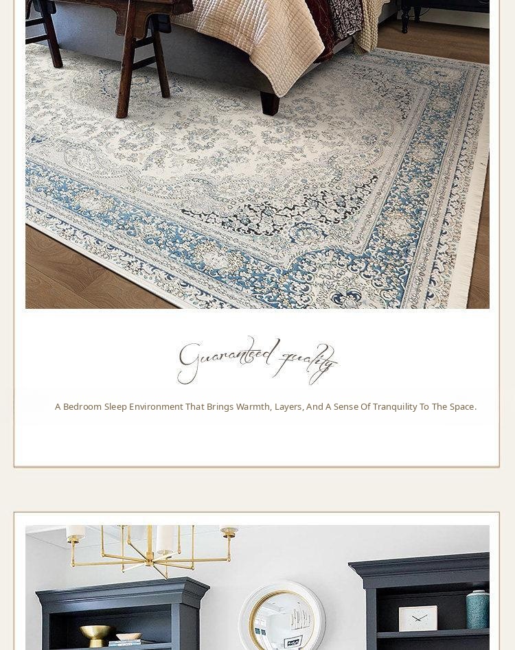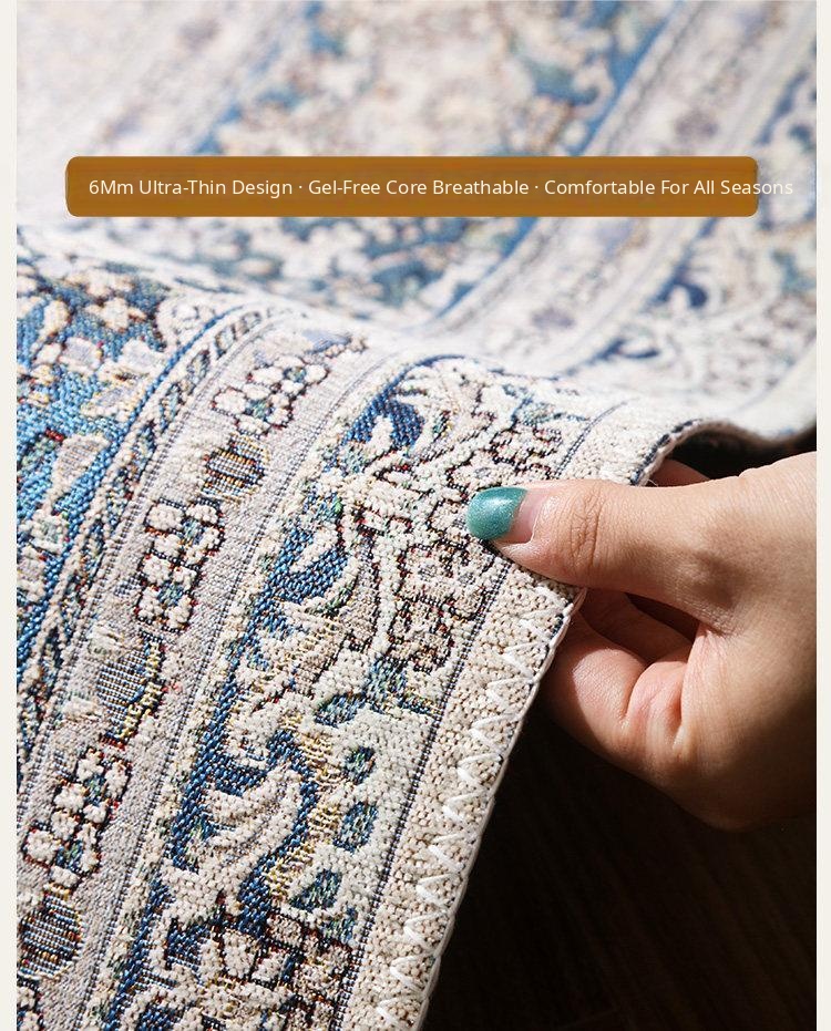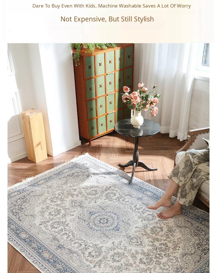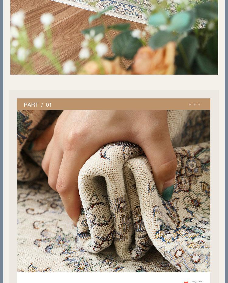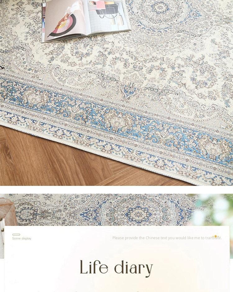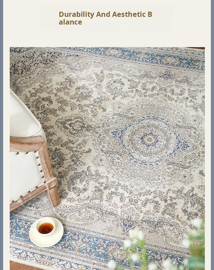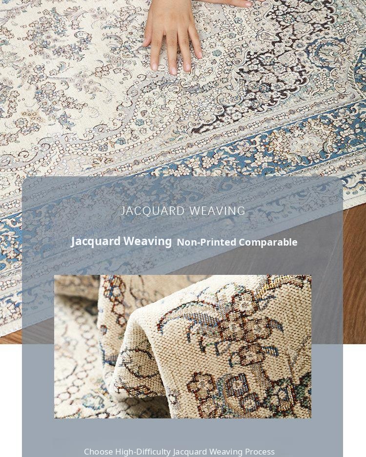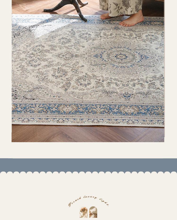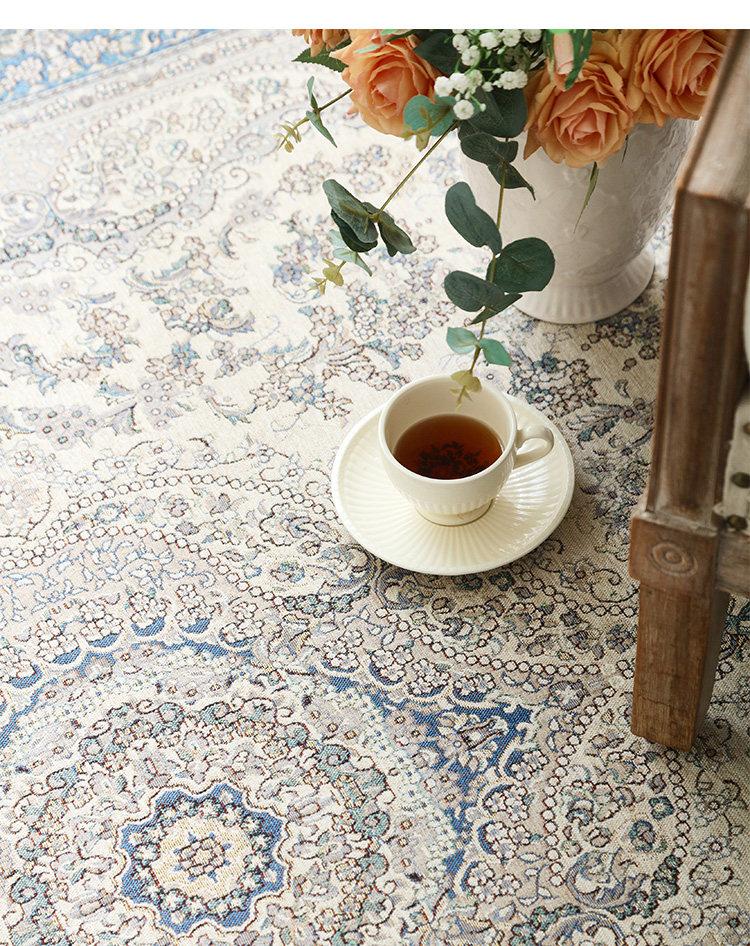 Chic Easy-Care No Glue Machine-Washable Carpet - French Cream Style Vintage American Area Rug for Living Room and Bedroom Bedside