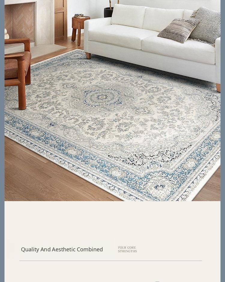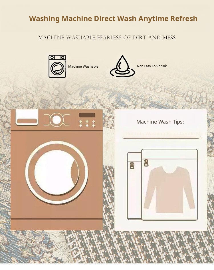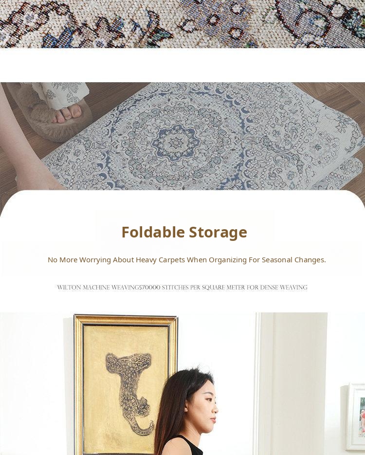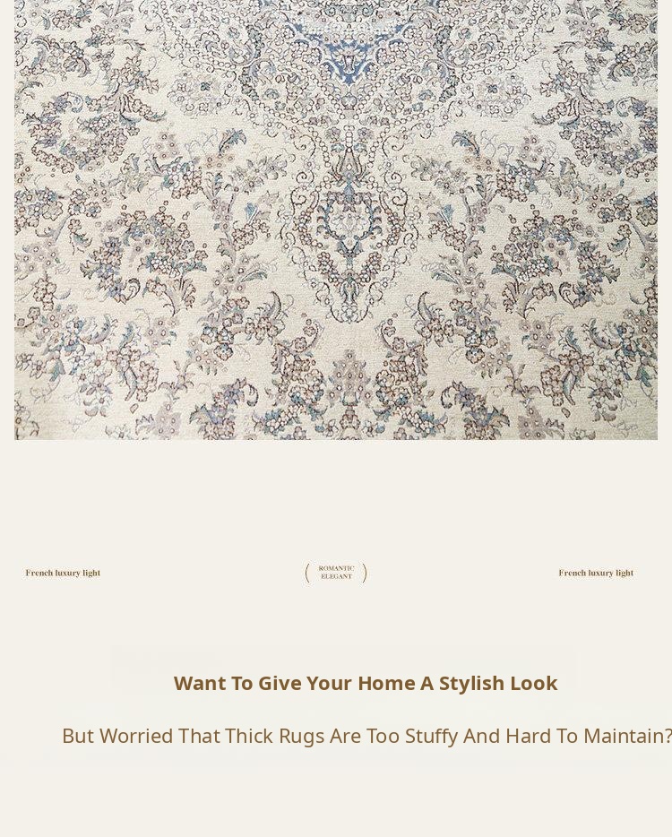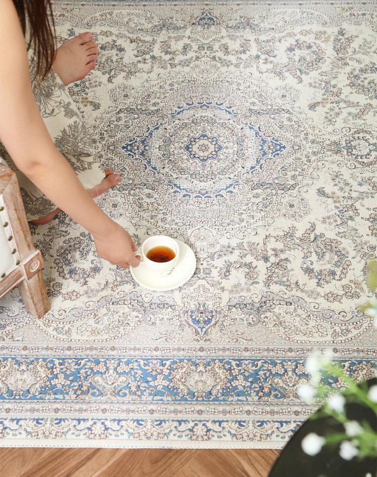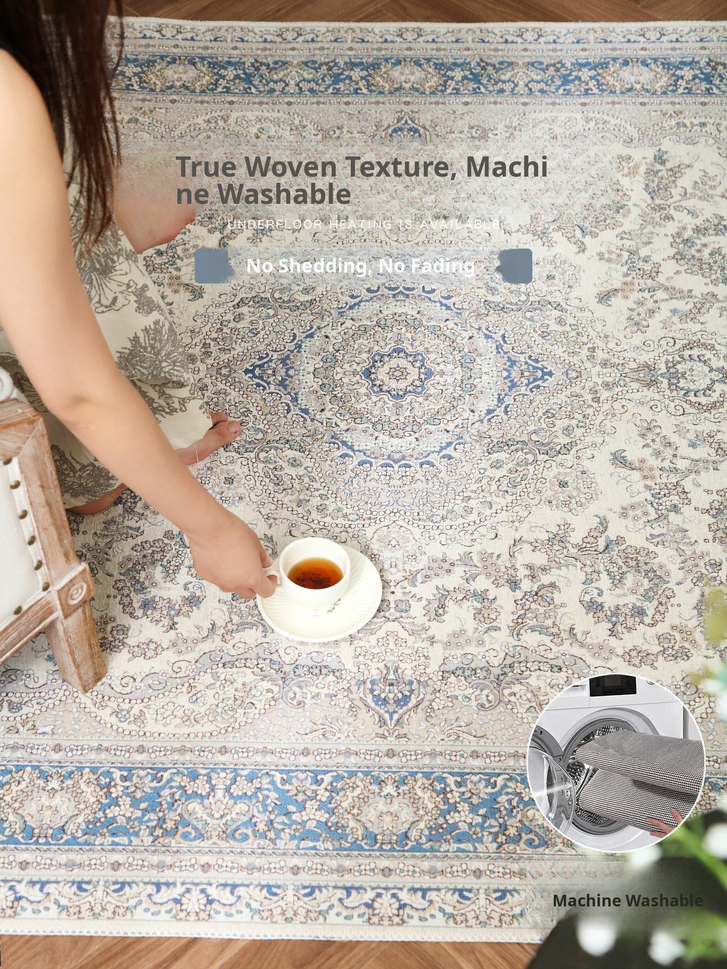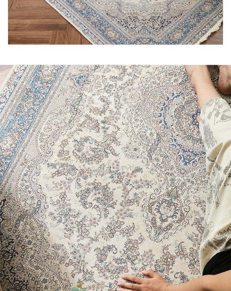 Chic Easy-Care No Glue Machine-Washable Carpet - French Cream Style Vintage American Area Rug for Living Room and Bedroom Bedside