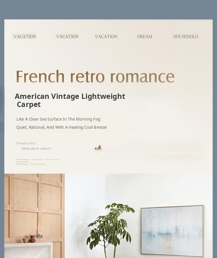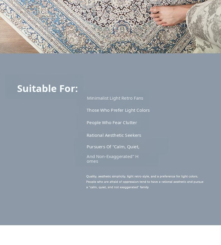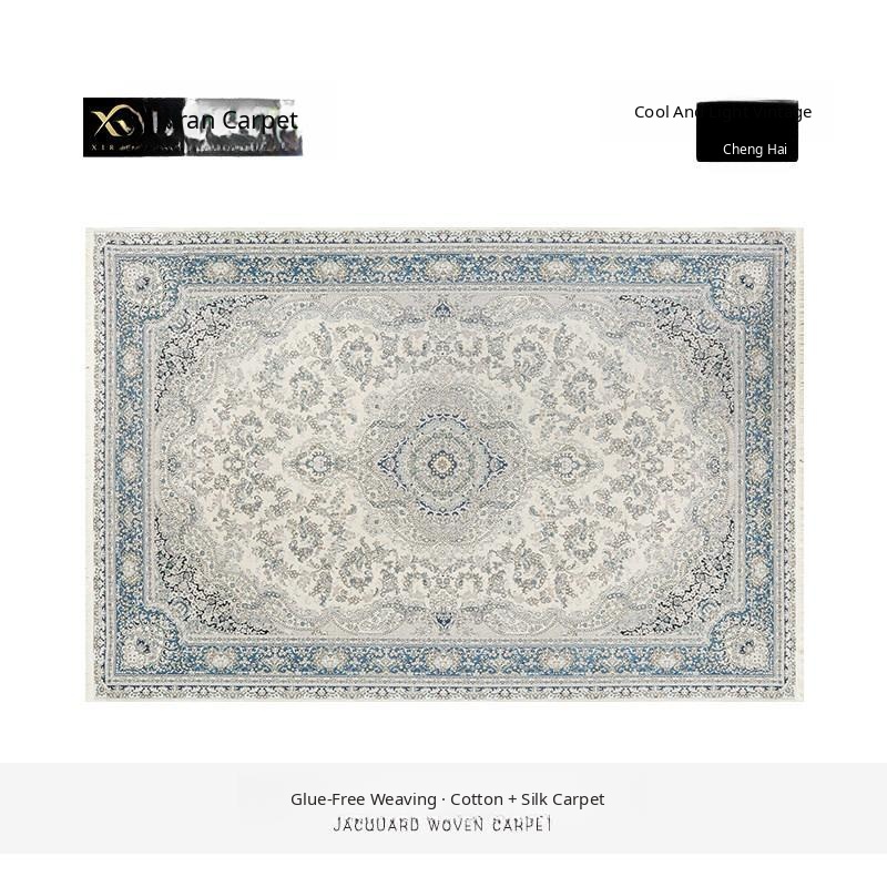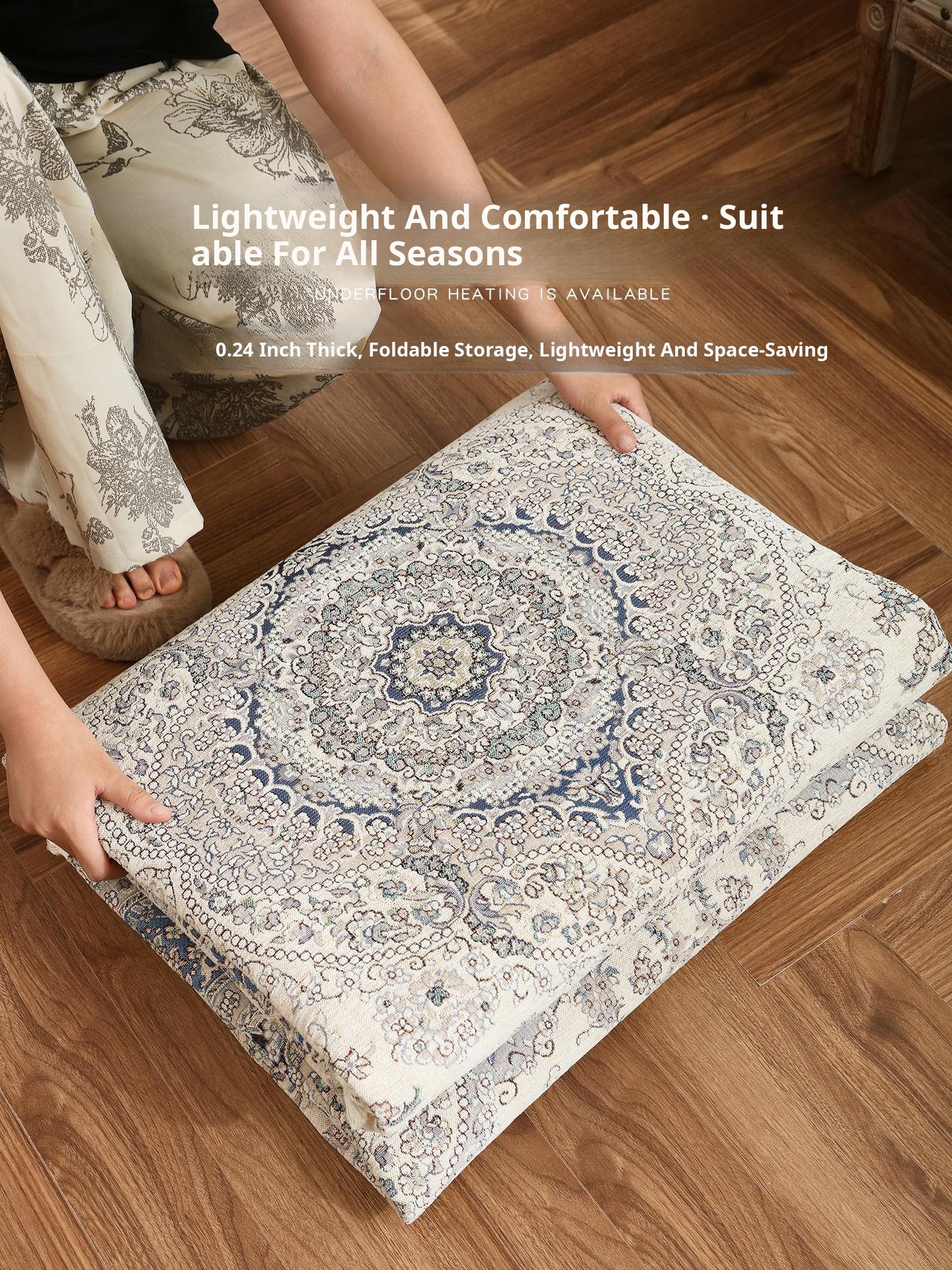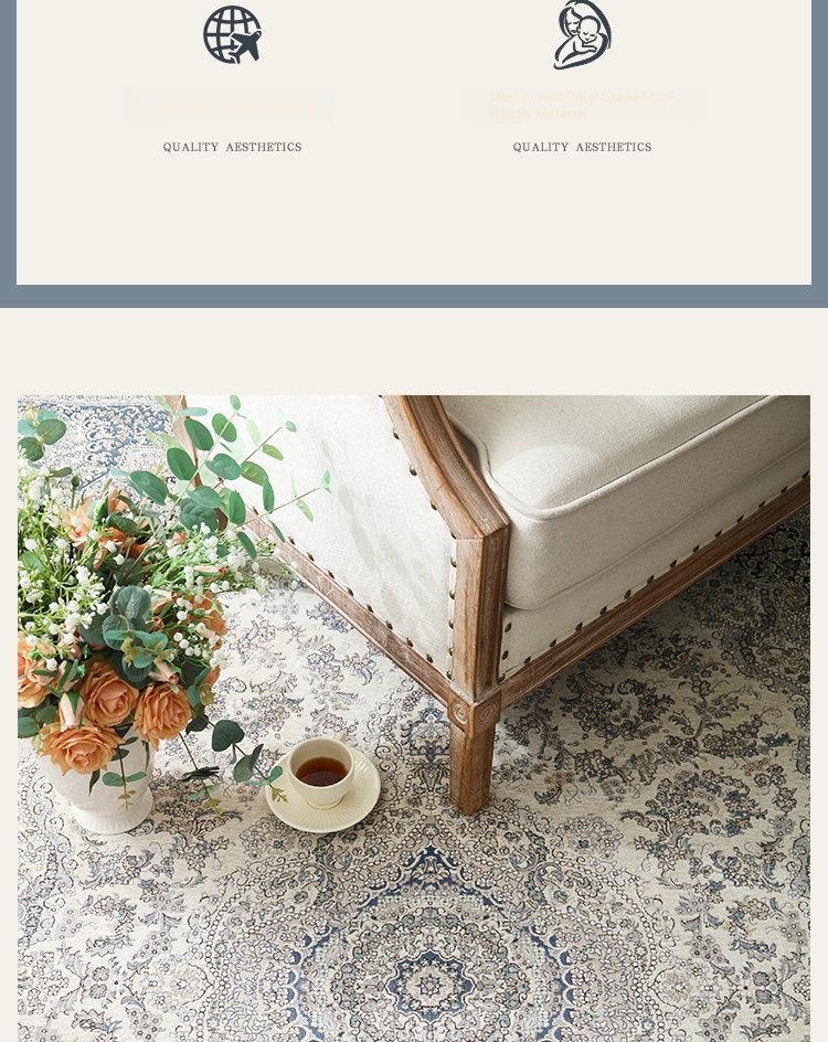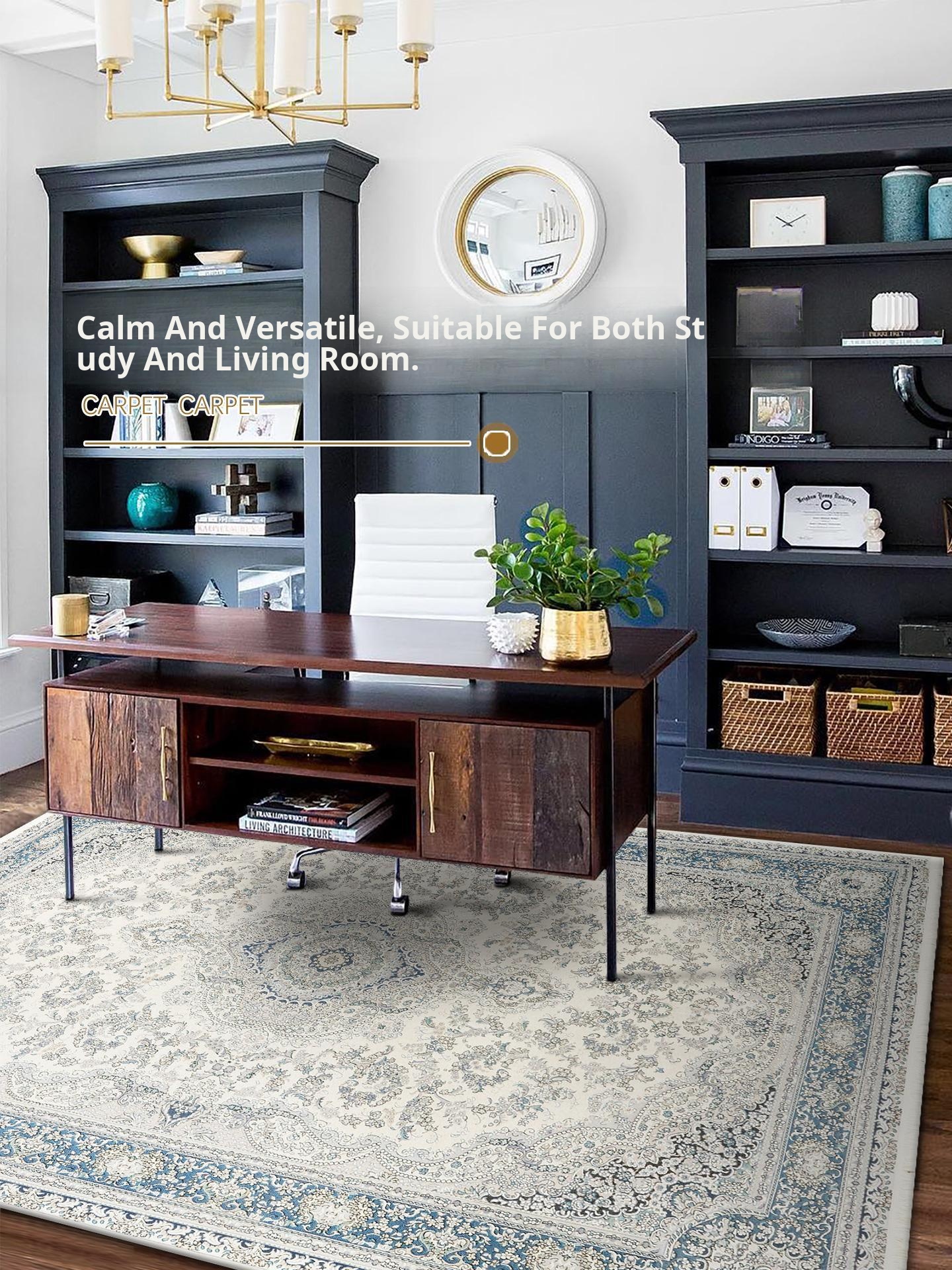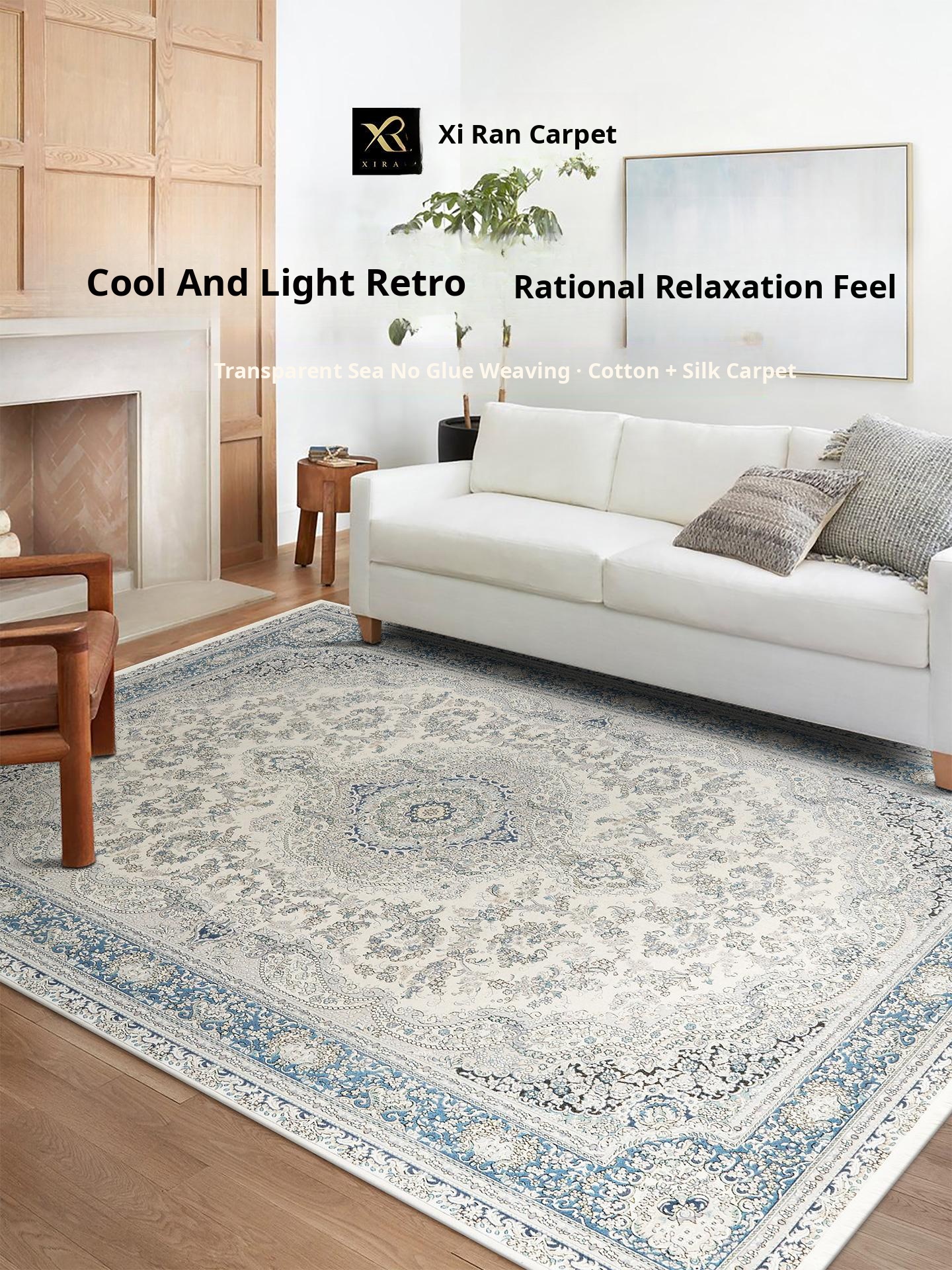 Chic Easy-Care No Glue Machine-Washable Carpet - French Cream Style Vintage American Area Rug for Living Room and Bedroom Bedside