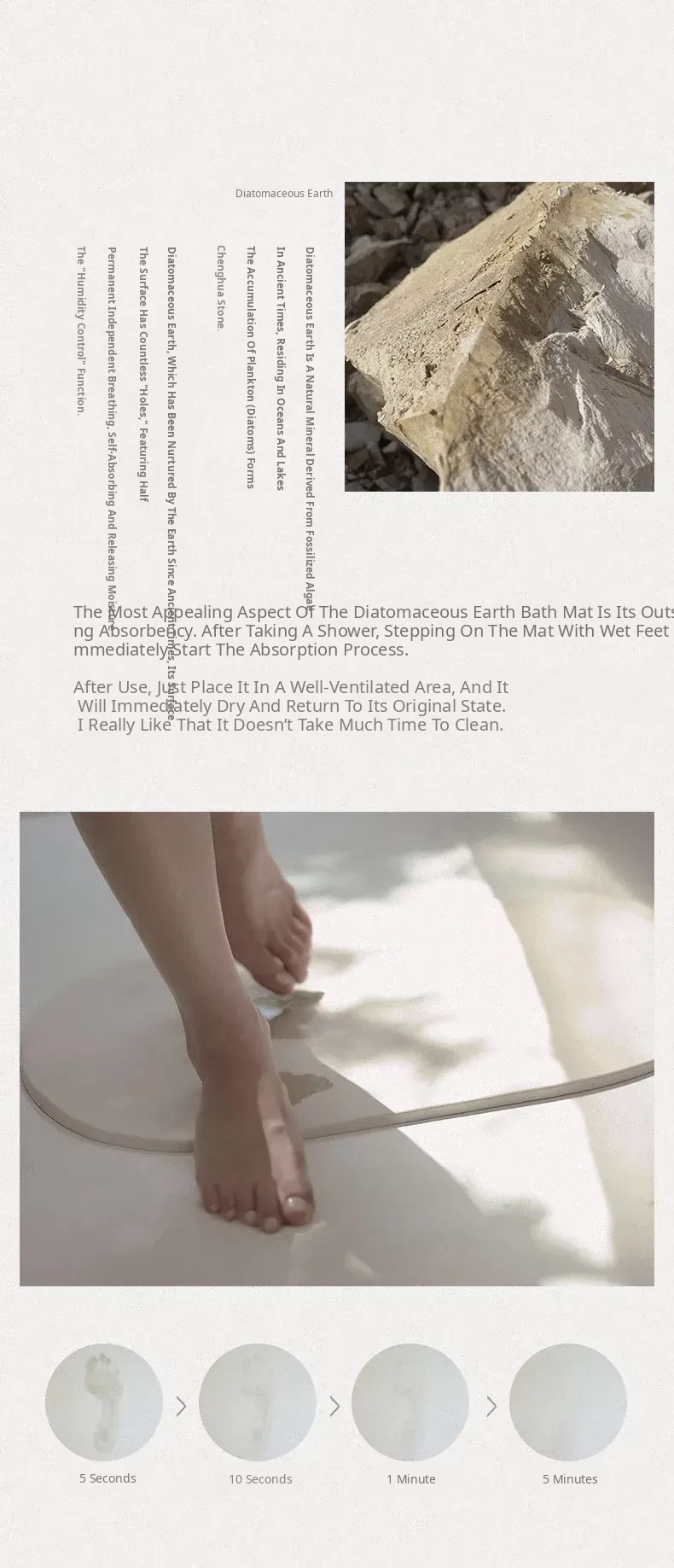 Wabi-Sabi Style Quick-Dry Diatomaceous Earth Bath Mat - Absorbent, Non-Slip, Perfect for Bathroom and Toilet Entrance
