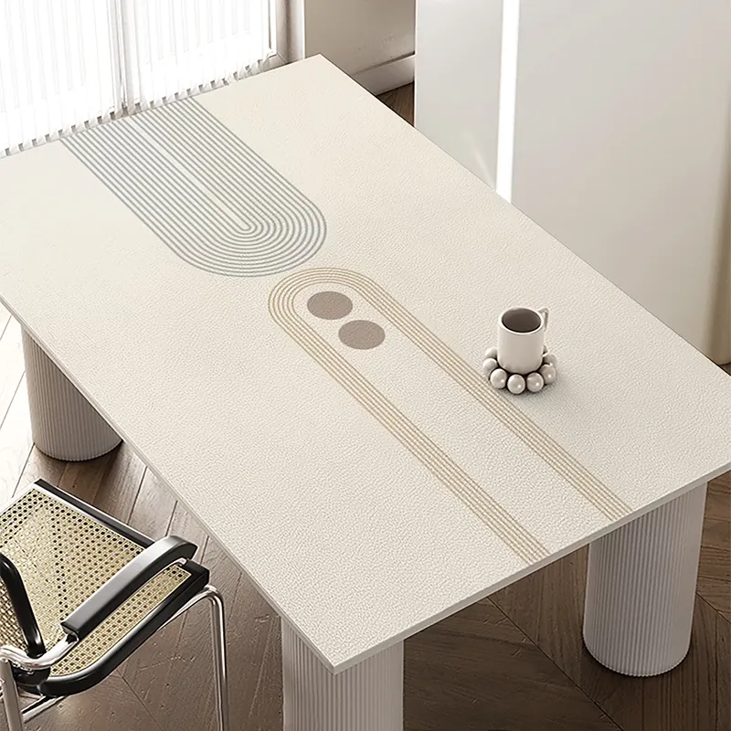 Wabi-Sabi Style Waterproof and Oil-Resistant Leather Tablecloth - Easy-Care Heat-Proof Dining Table Mat for Effortless Elegance on Coffee Tables and Dining Surfaces.