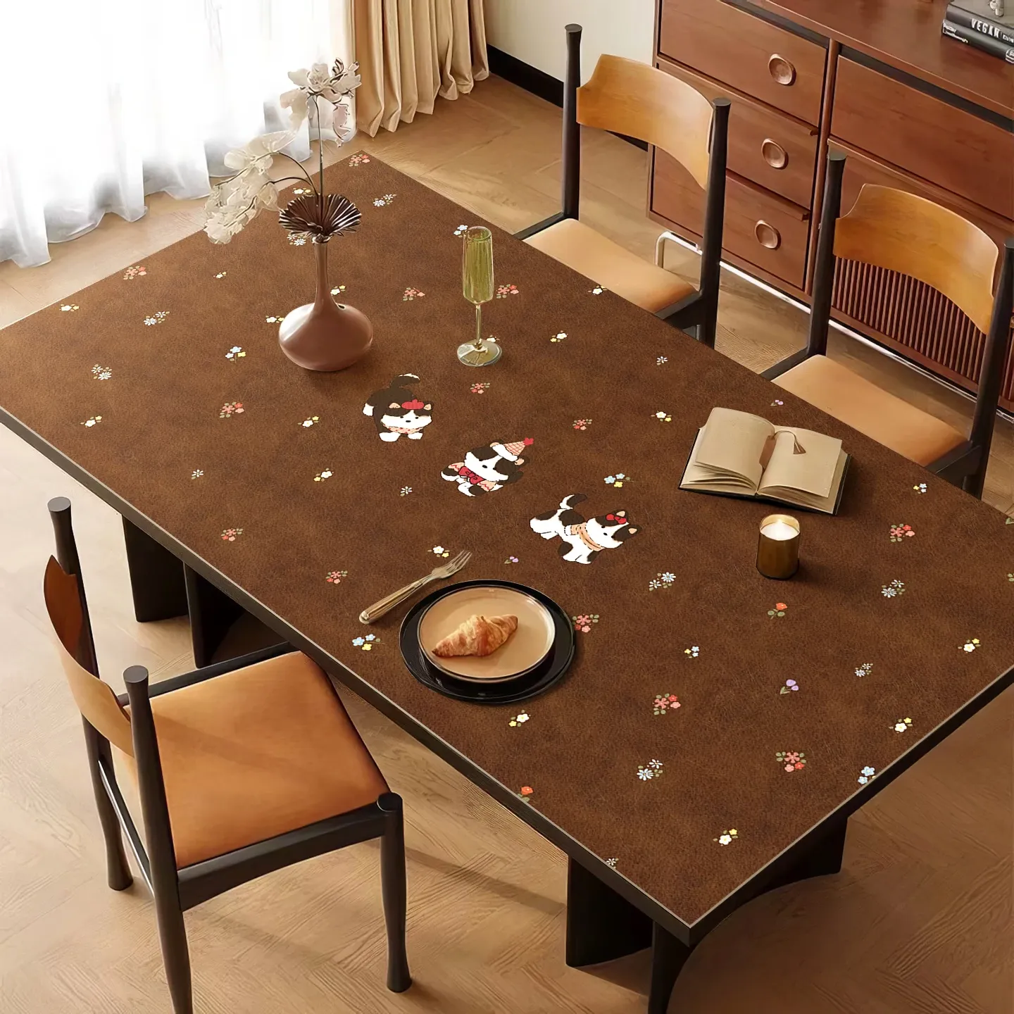 Elegant Wabi-Sabi Style TV Stand with Shoe Storage, Waterproof and Oil-Proof Leather Tablecloth for Dining Sideboard, Easy-Clean Coffee Table Mat - Perfect for Modern Homes