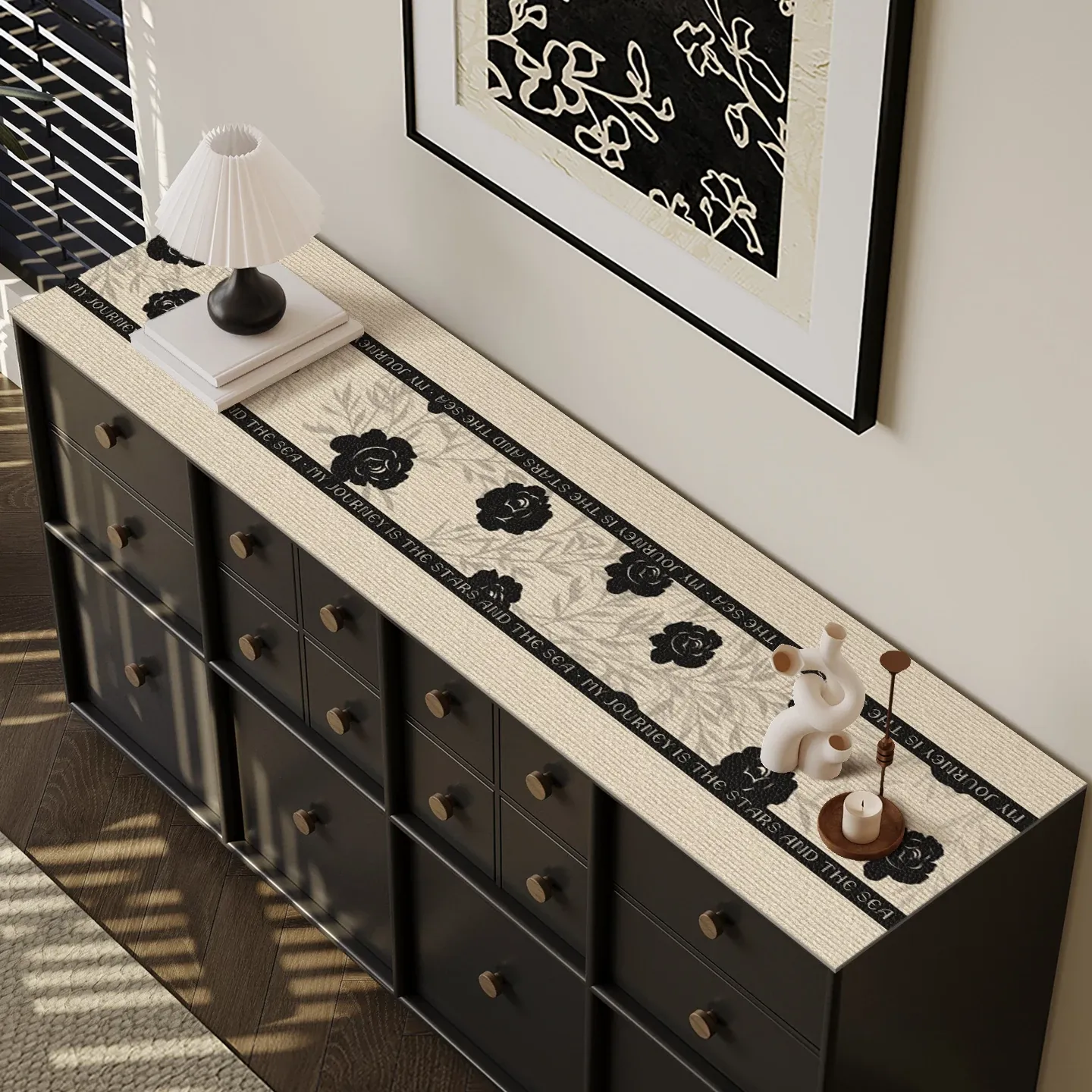 Elegant Chinese Ink Style Waterproof and Oil-resistant Tablecloth for Dining Side Cabinet, TV Stand, Easy-Clean Entrance Shoe Cabinet Surface Protector