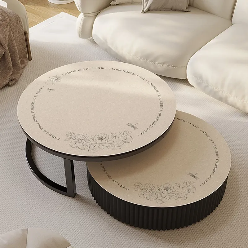 Japanese Wabi-Sabi Style Round Tabletop Protector Mat - Waterproof, Oil-Resistant, Heat-Resistant, and Easy-Clean Leather Tablecloth for Dining and Coffee Tables