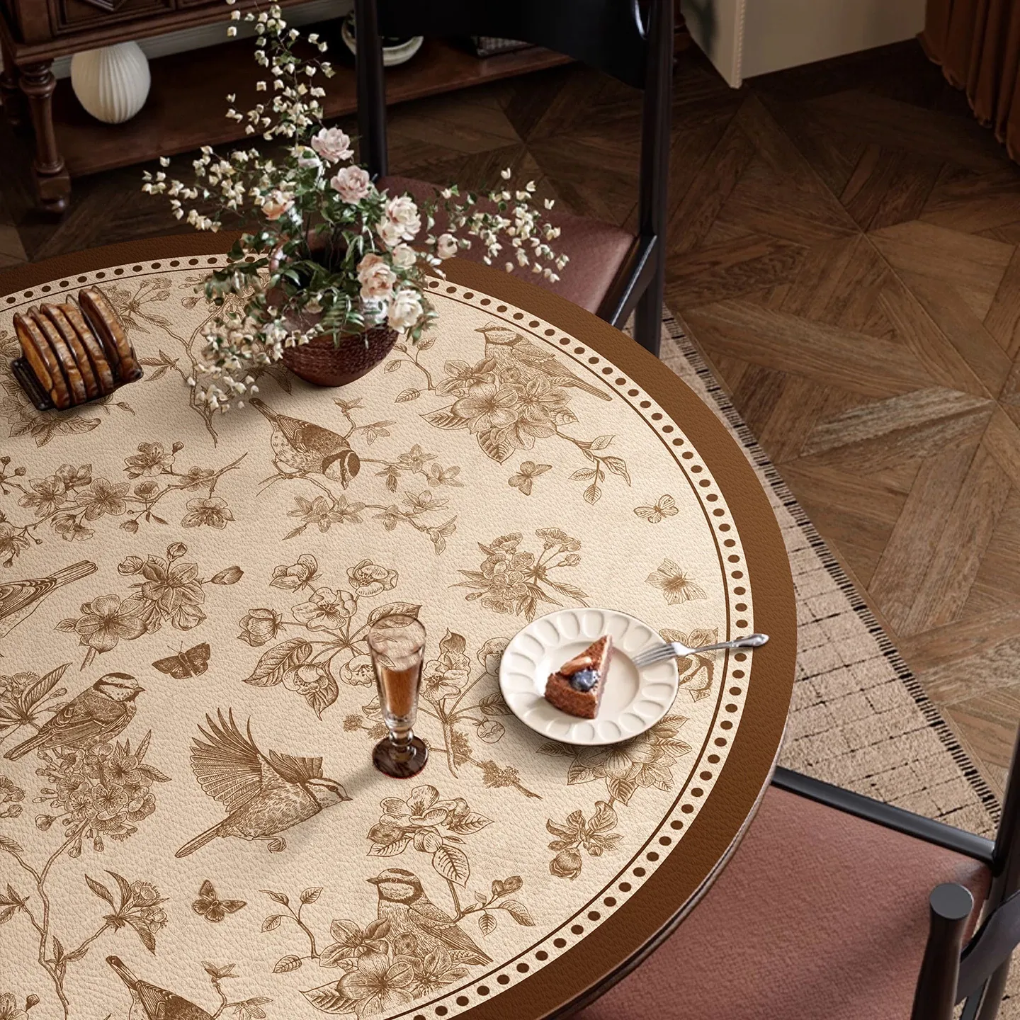 French Round Tablecloth - Waterproof, Oil-Resistant, and Easy-Clean Dining Table Mat. Heat-Resistant Surface Protector for Desks and Coffee Tables. Perfect for Stylish and Practical Dining Experiences!