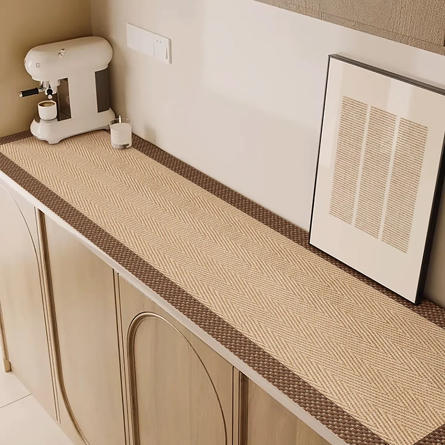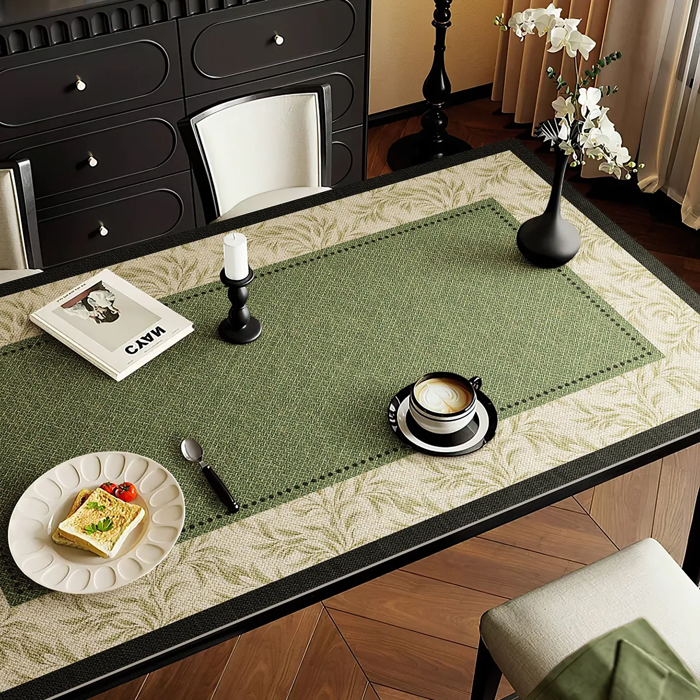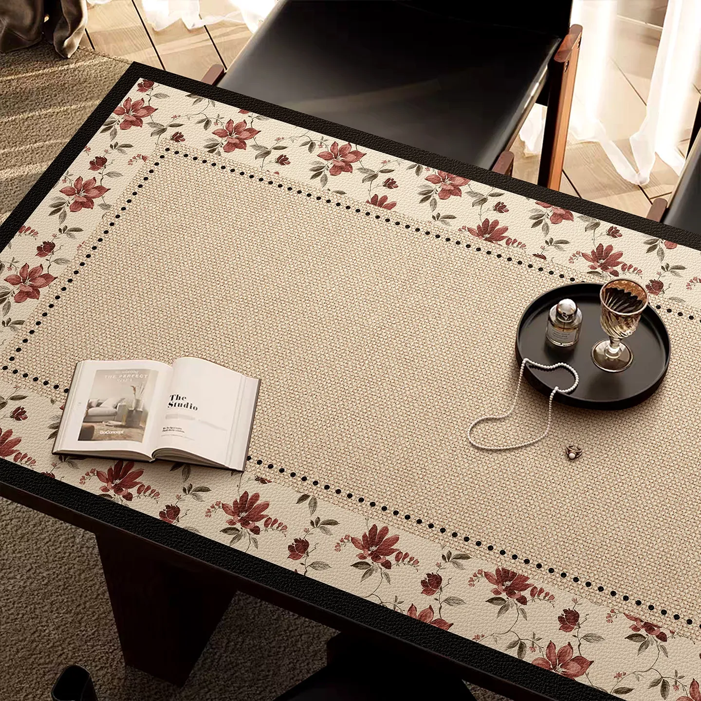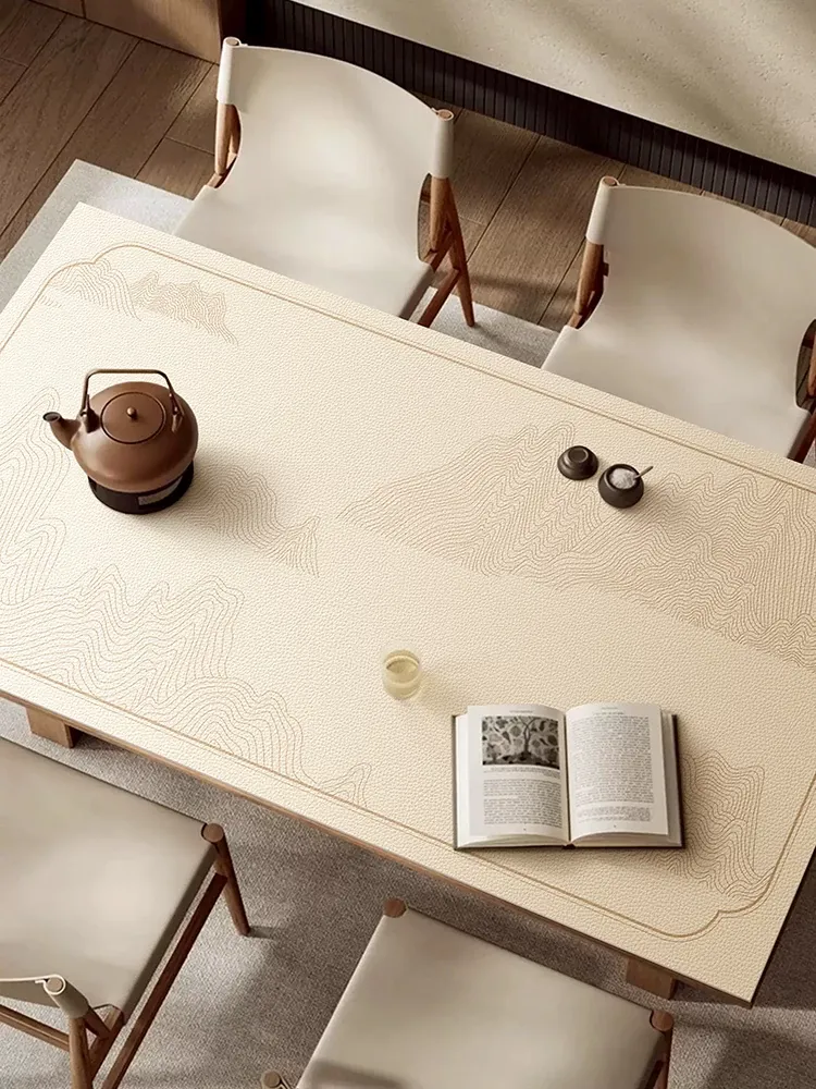 Elegant Wabi-Sabi Style TV Cabinet Mat - Waterproof, Oil-Resistant, Easy Care Leather Table Protector for Luxurious Dining Experience