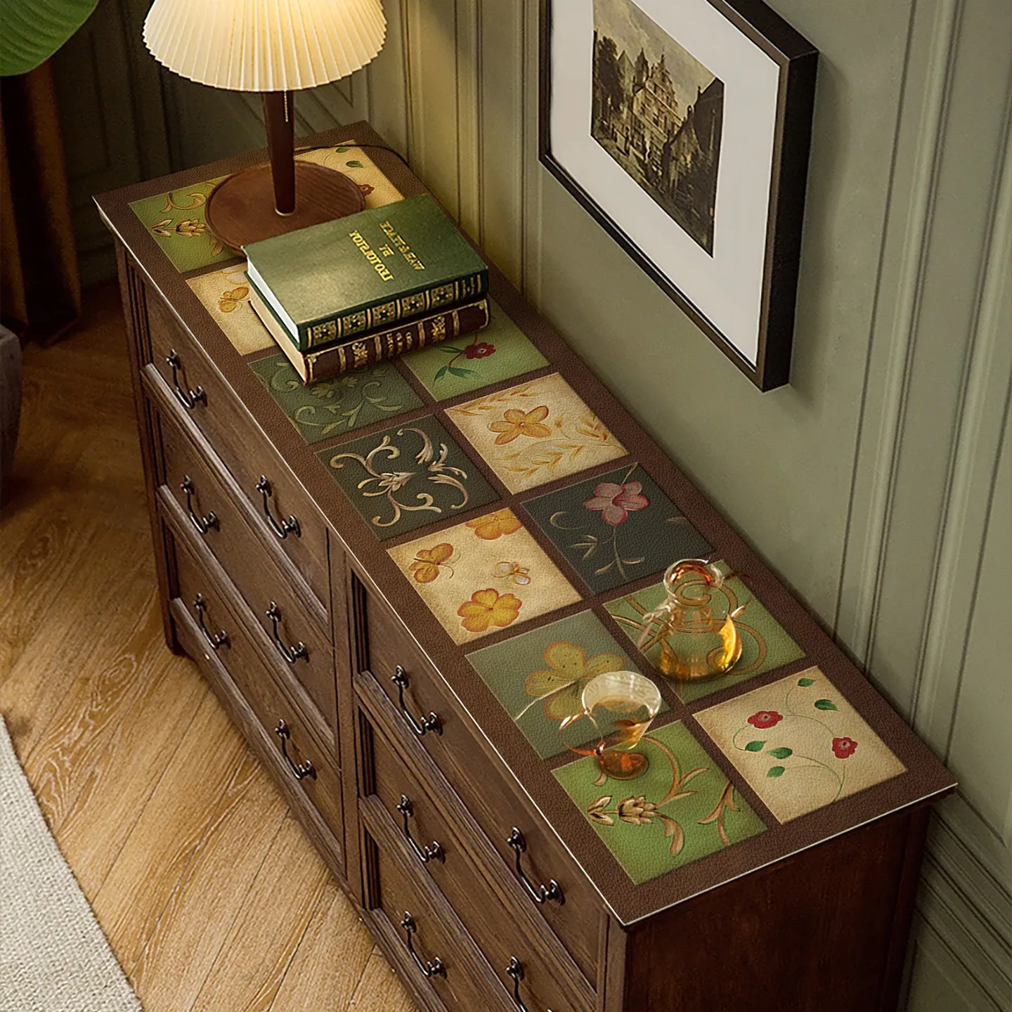Vintage-Inspired Leather-Look Non-Washable Heat-Resistant PVC Table Protector for Sideboards, TV Stands, Bar Cabinets, Entryway Shoe Cabinets - Perfect for Stylish Home Decor!