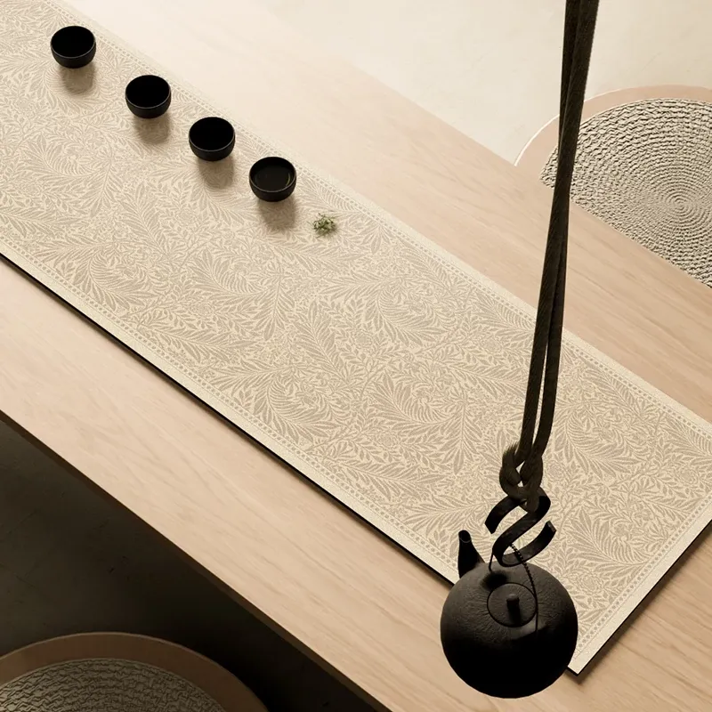 Elegant French Soft Diatomite Table Runner - Quick-Dry, Absorbent, Perfect for Luxe Tea Ceremonies and Stylish Dining Experiences