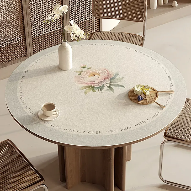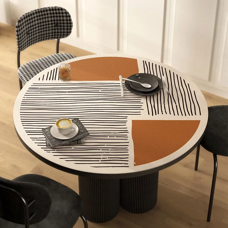 Luxury Waterproof PVC Leather Round Tablecloth - Non-Washable, Oil-Resistant, Scandinavian Style, Heat-Resistant and Durable for Coffee Tables