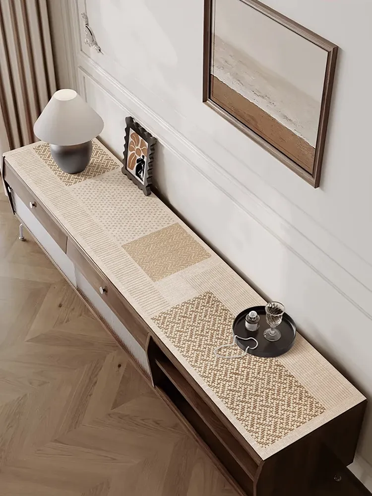 Minimalist Woven Texture Rectangle Tablecloth - Waterproof, Non-Slip, Dustproof Leather Mat for Dining Cabinets, TV Stands, and Shoe Cabinets. Perfect for Stylish Home Décor!