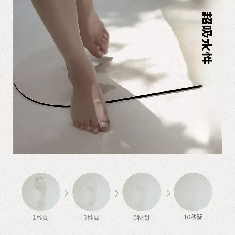 バナナ風インテリアの柔らかい珪藻土吸水アーチ型バスルームマット - 滑り止め付きでトイレやシャワールームの入り口に最適!快適さとおしゃれを両立した必見アイテムです。