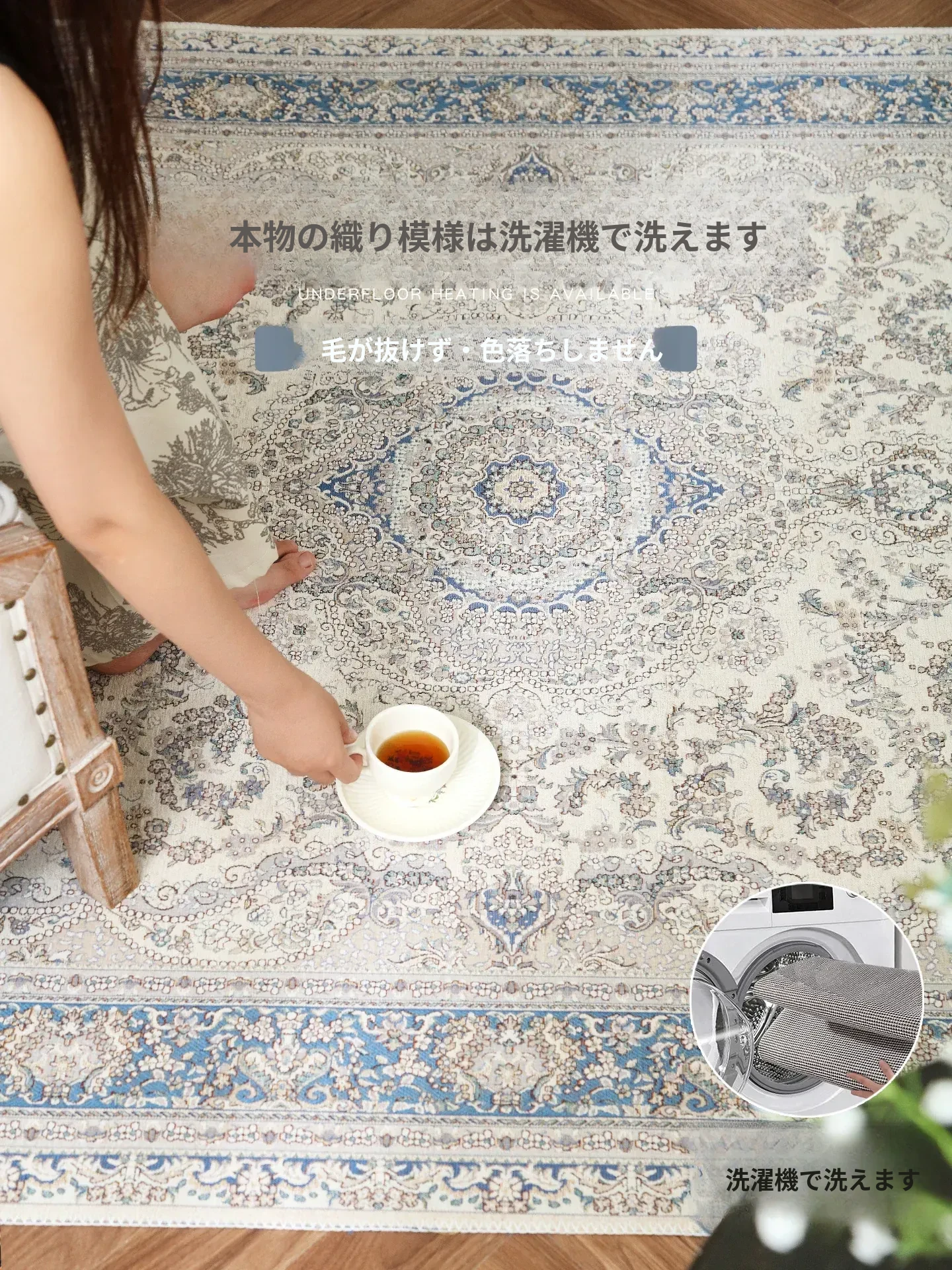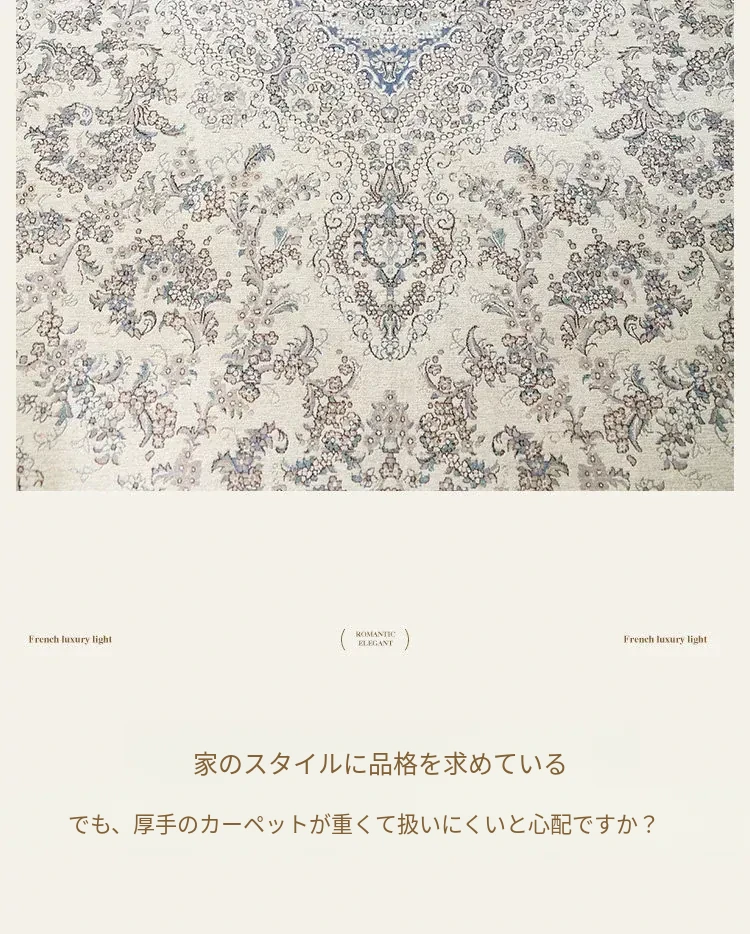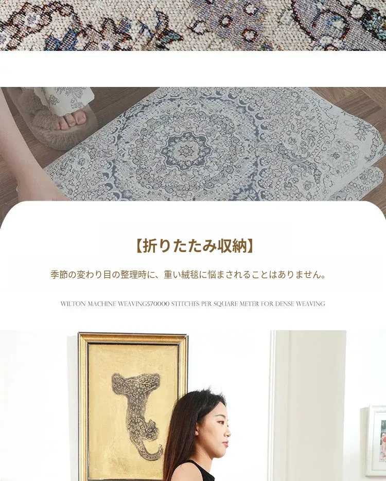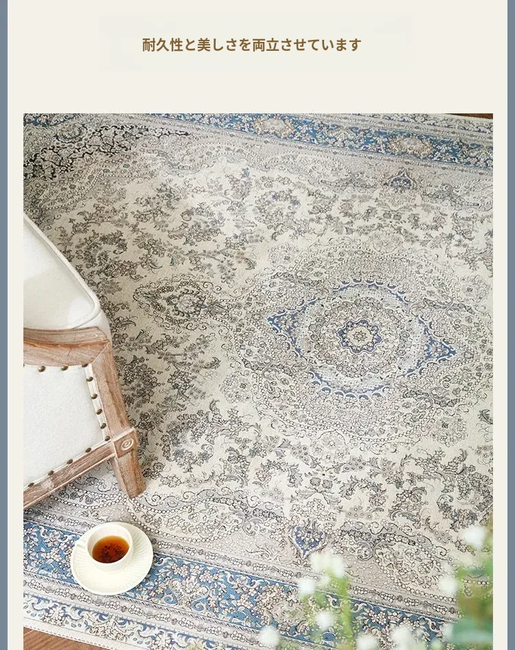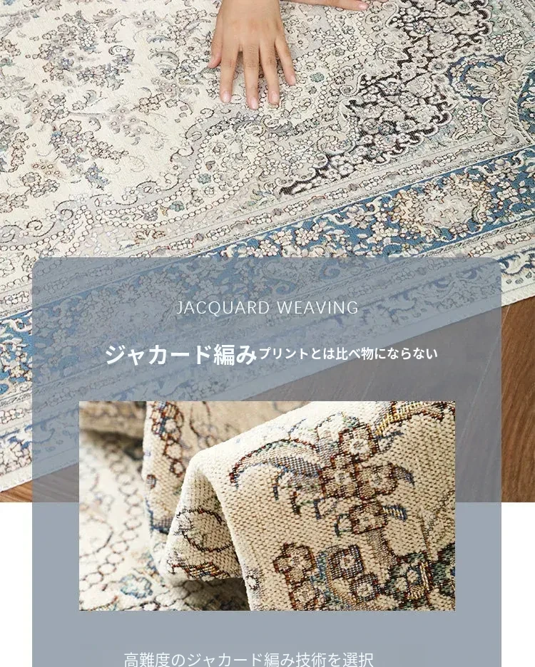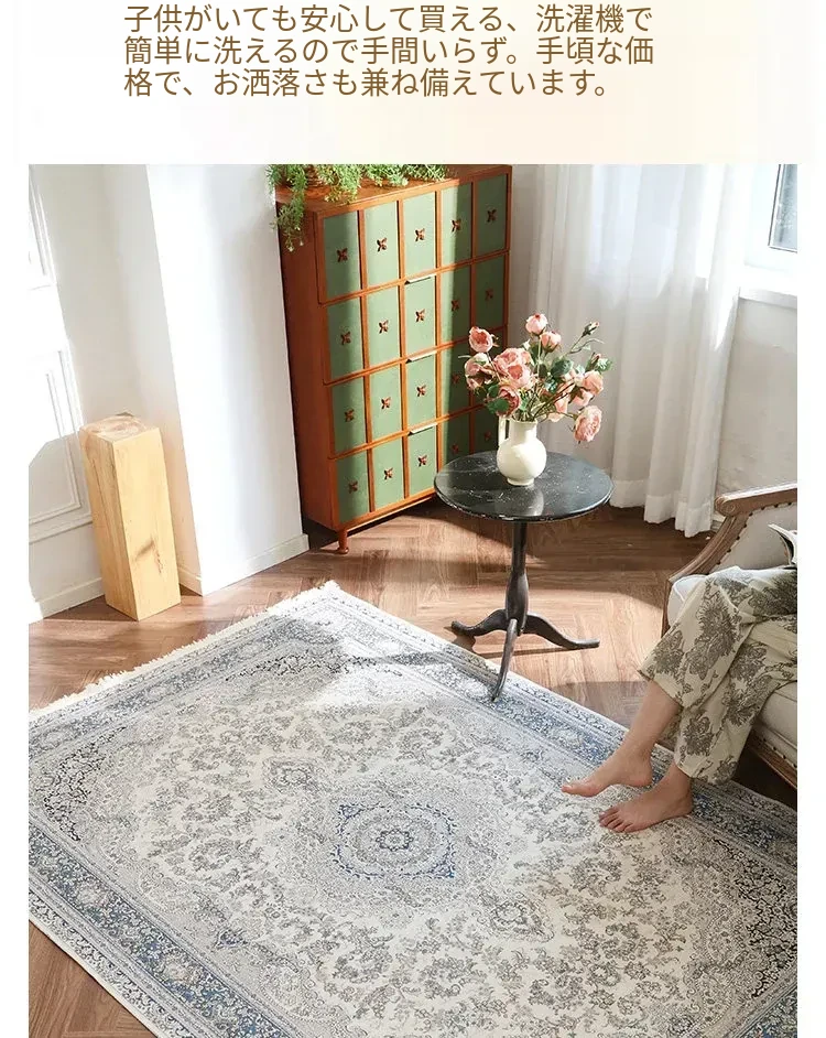 シラン新作!お手入れ簡単・ノーグルー・洗濯機OKのカーペット。フレンチクリームスタイルのアメリカンヴィンテージ。リビングや寝室、ベッドサイドにぴったりの一品です!