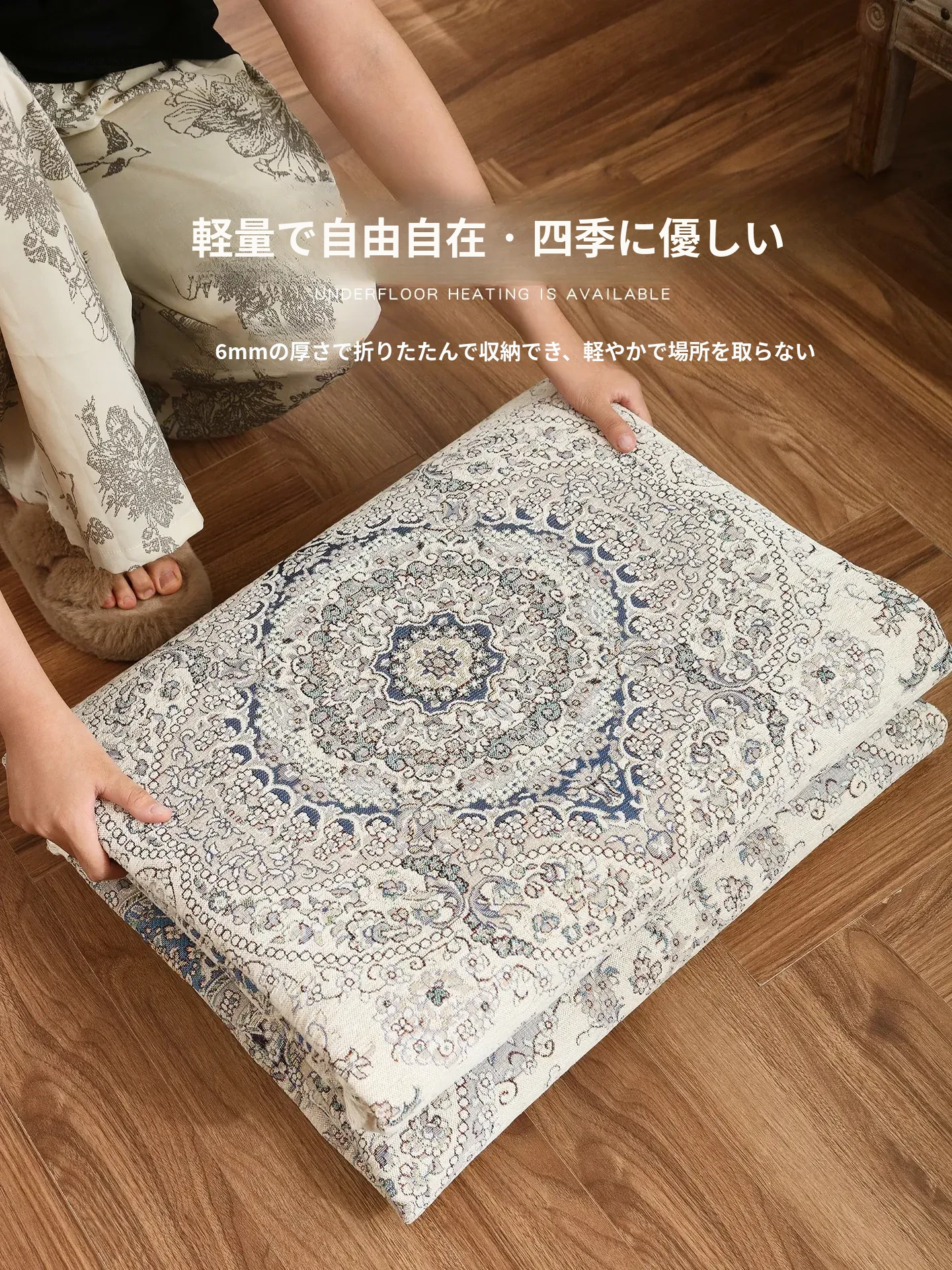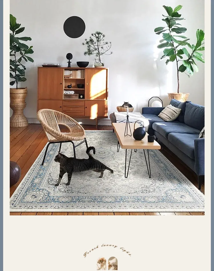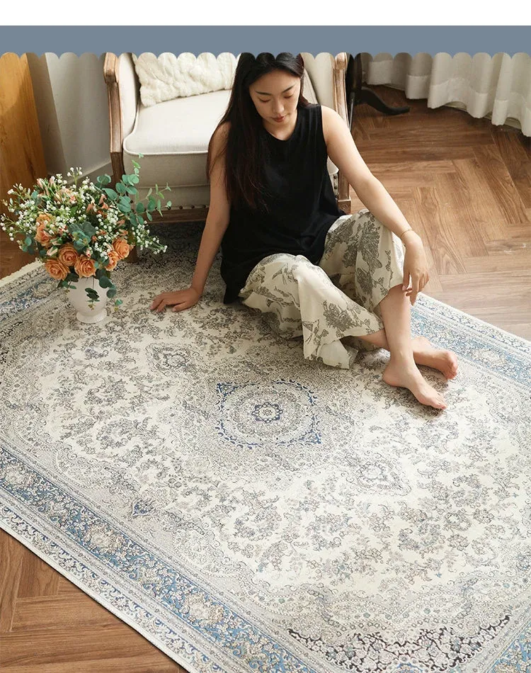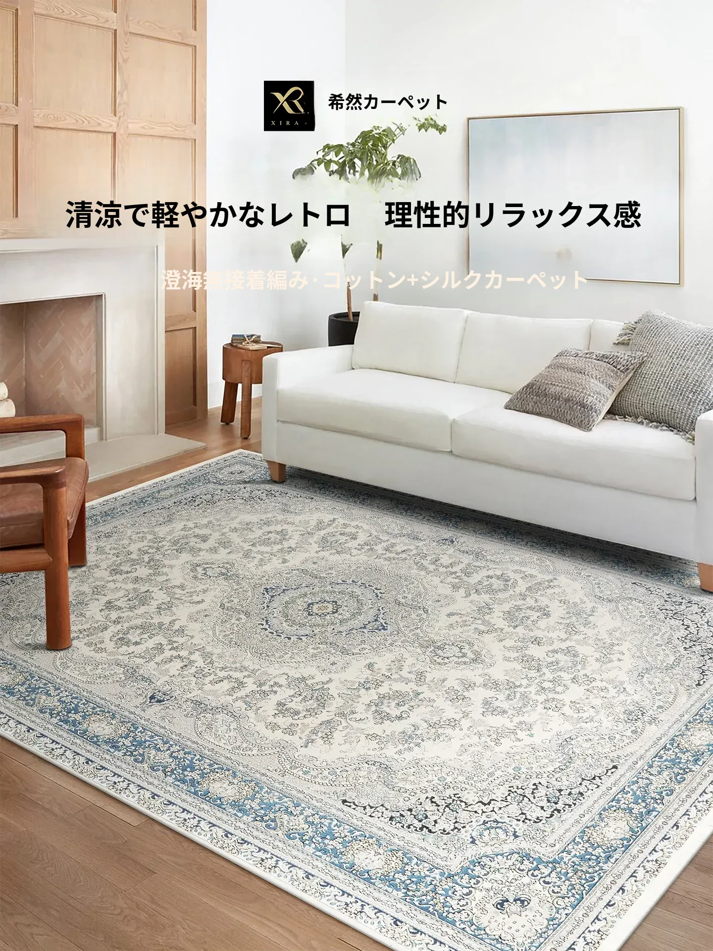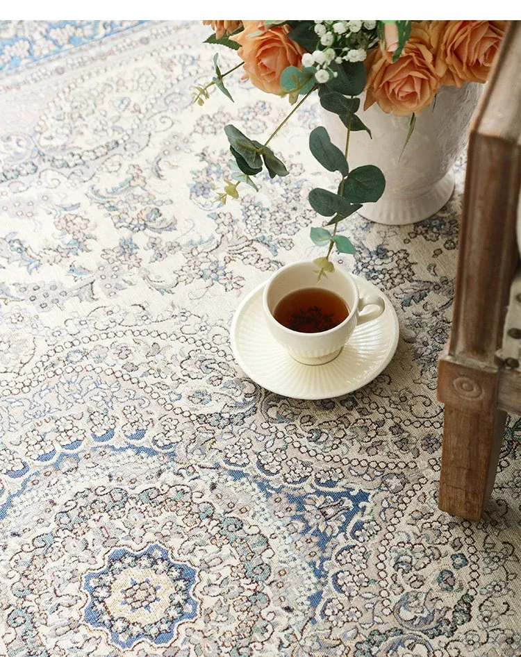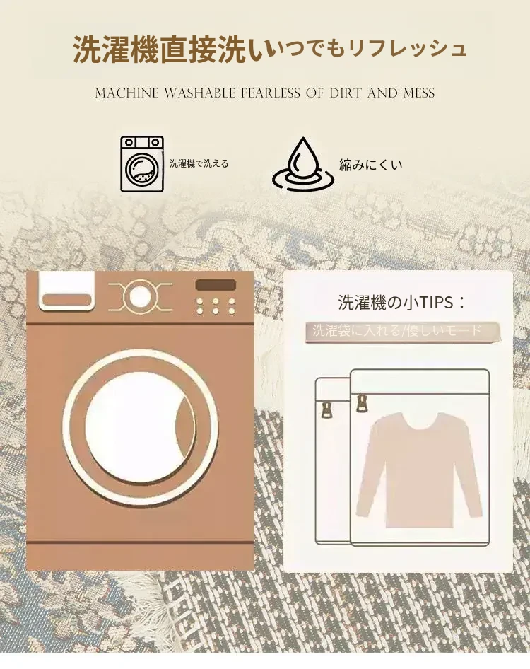 シラン新作!お手入れ簡単・ノーグルー・洗濯機OKのカーペット。フレンチクリームスタイルのアメリカンヴィンテージ。リビングや寝室、ベッドサイドにぴったりの一品です!