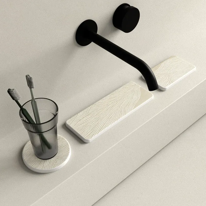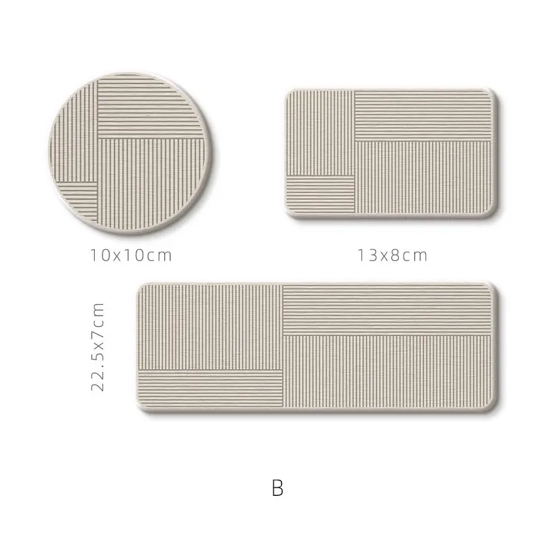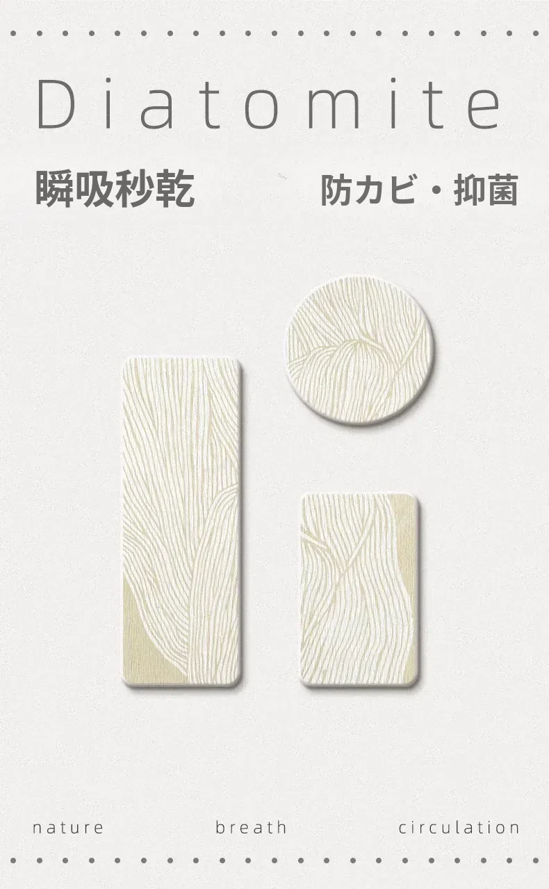 和風侘寂スタイルの浴室用硬質珪藻土マット - トイレ・洗面台用吸水マットで、洗練されたデザインと優れた吸水性を実現!美しい空間を演出し、毎日の洗面時間を極上のひとときに。