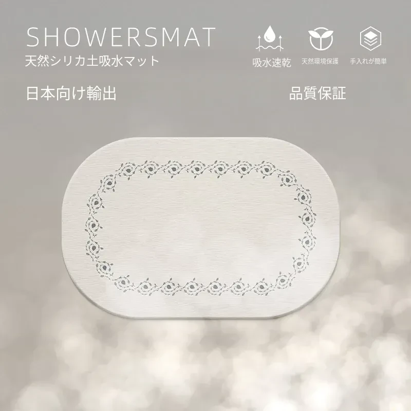 吸水性抜群!バスルーム用ハードシリカ藻マット - トイレや玄関に最適な滑り止めデザイン!速乾性と清潔感を兼ね備えたシリカ土マットで、快適なバスタイムをお楽しみください。