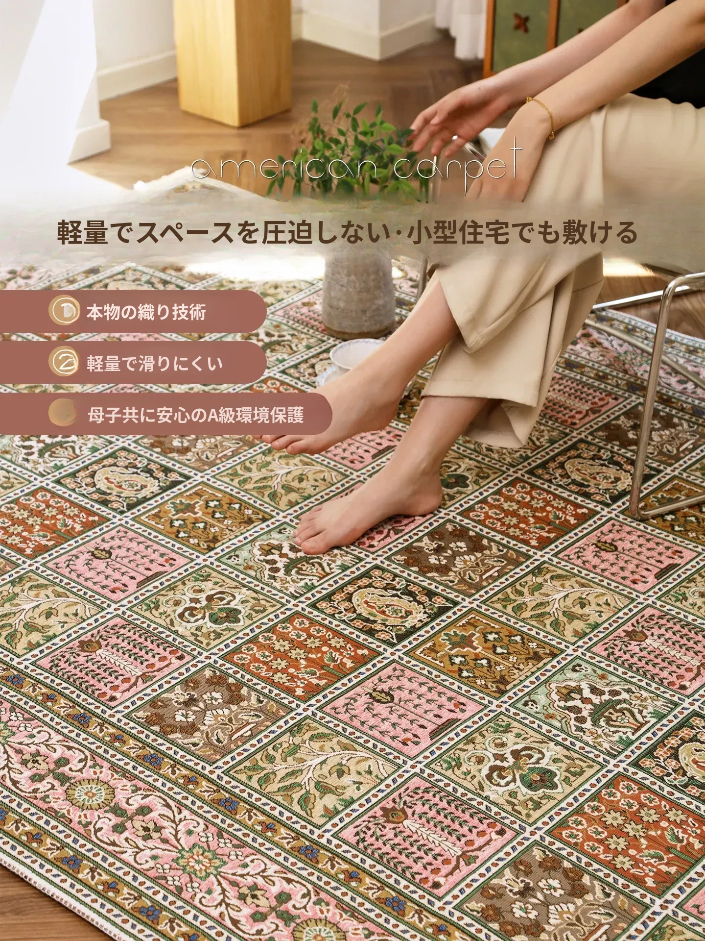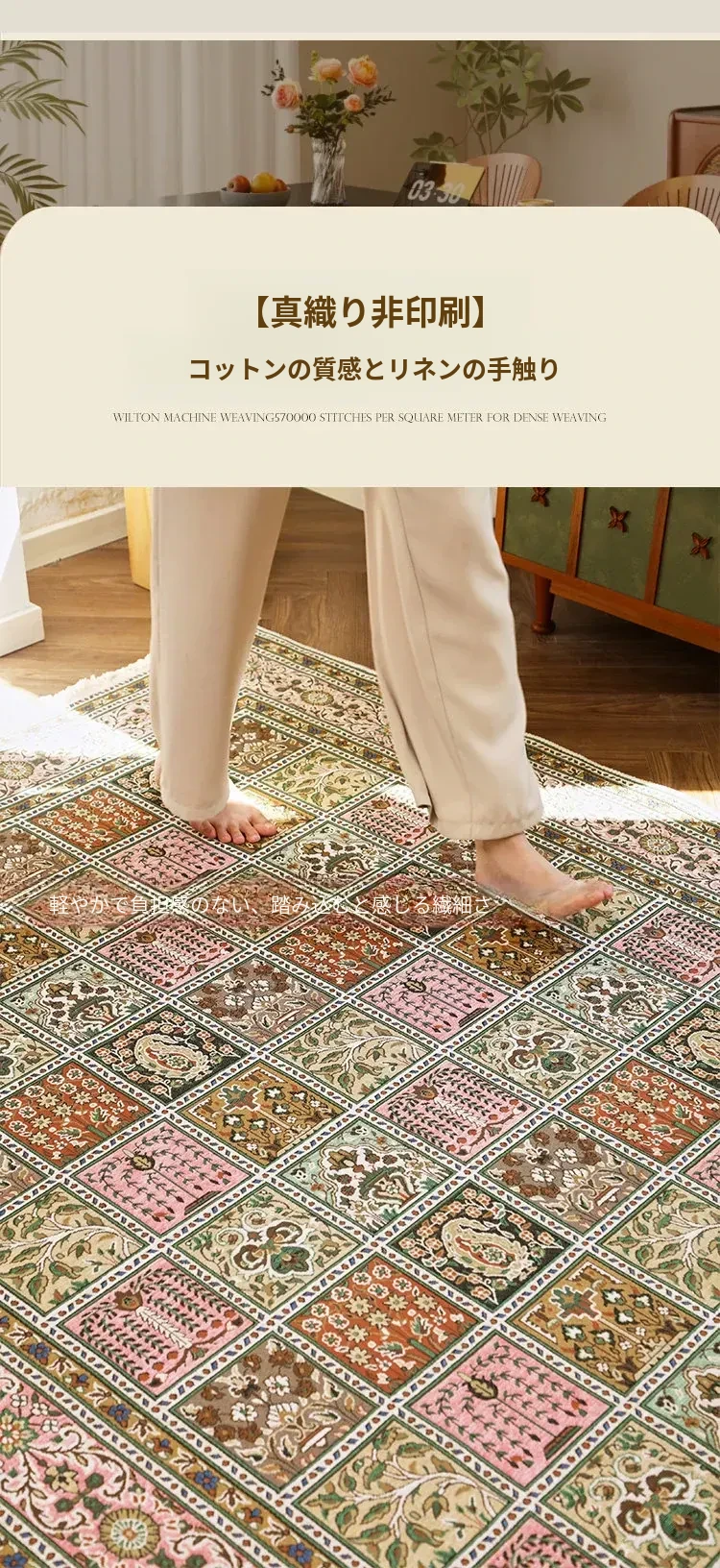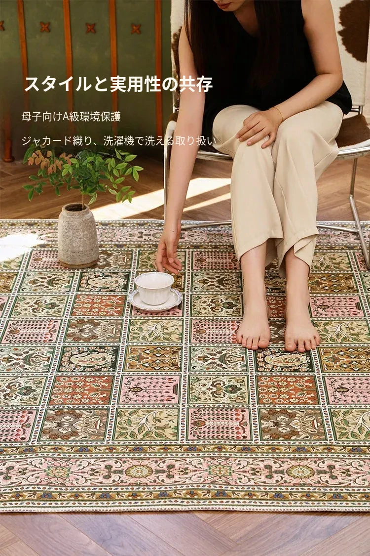 希然2025新作!洗えるウィーブラグ - リビングや寝室に最適なレトロペルシャデザインのアメリカンラグ、軽やかなラグでインテリアを格上げ!