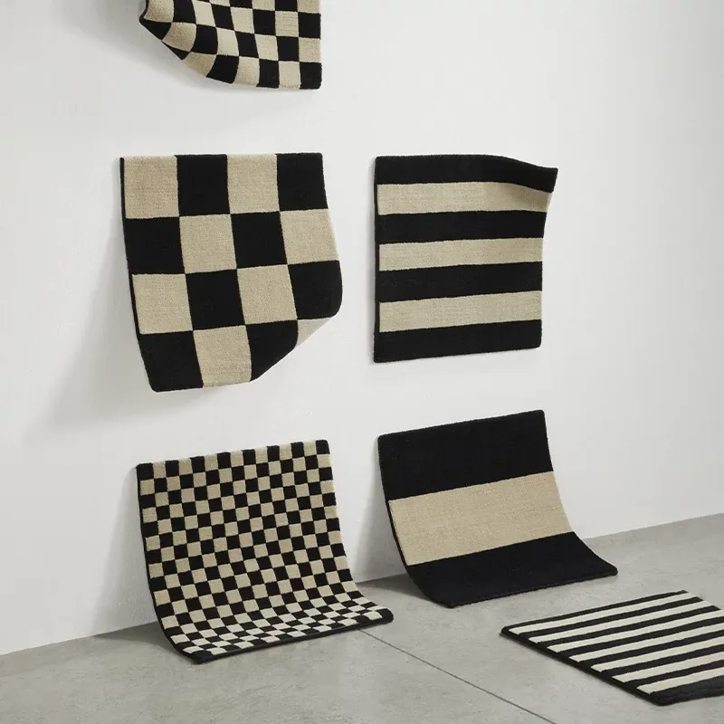モダンシンプルなチェック柄の吸水マット - バスルームやトイレの入り口にぴったり!滑り止め付きで安全性も抜群。おしゃれで快適な空間を演出します。