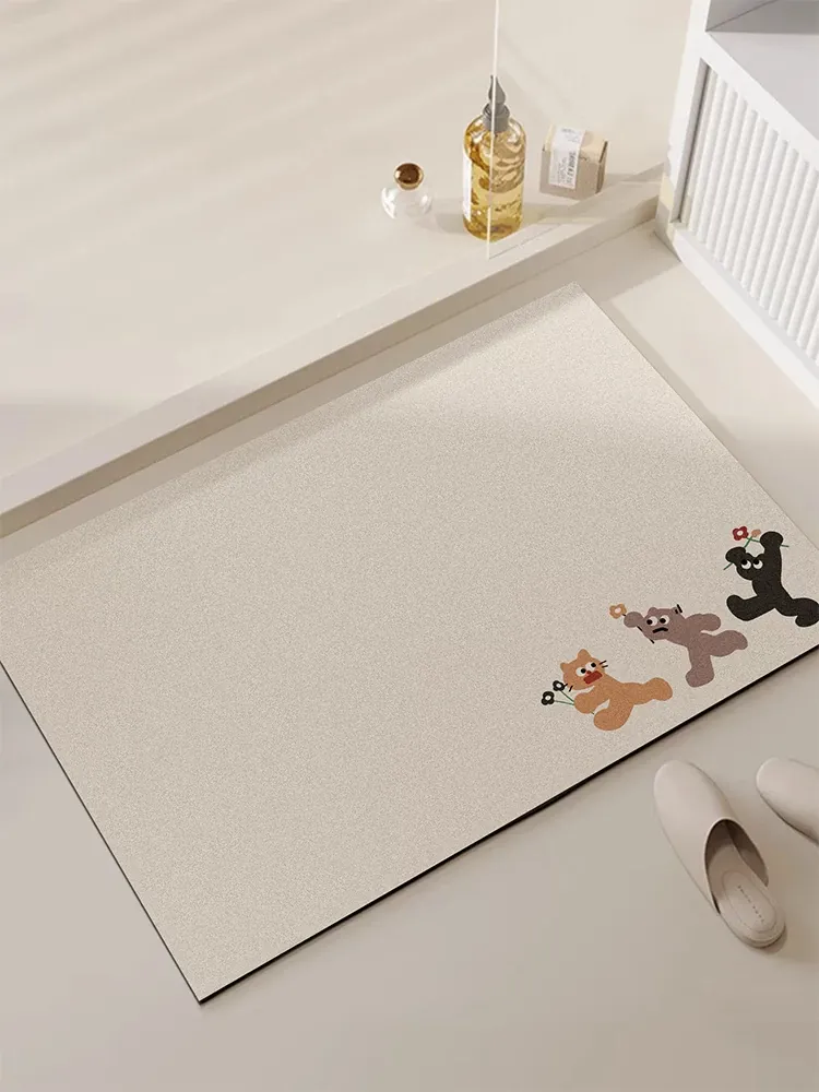 かわいいカートゥーンデザインの滑り止めバスマット!速乾性と耐汚れのシリカゲル素材使用。トイレや洗面所の玄関マットに最適な柔らかさで、毎日の快適なバスタイムをサポートします。