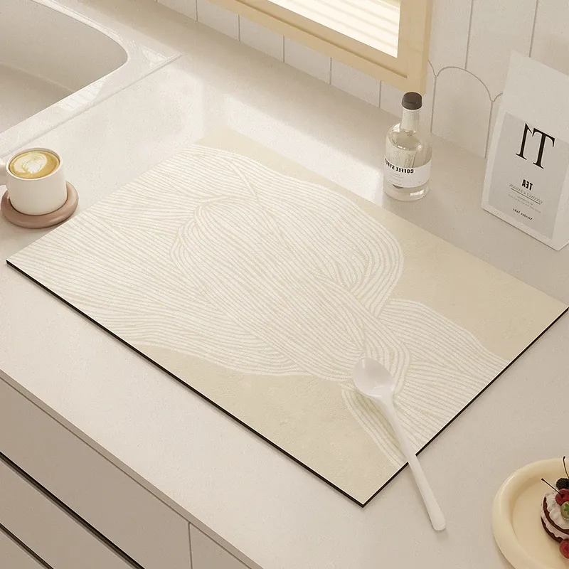高級感あふれるシリコン吸水マット - キッチンやダイニングテーブルに最適な高品質ディスプレイ!熱を遮断し、洗面台や茶飲みの際に活躍するおしゃれなデザイン。柔らかな質感で、毎日の生活をワンランクアップ!