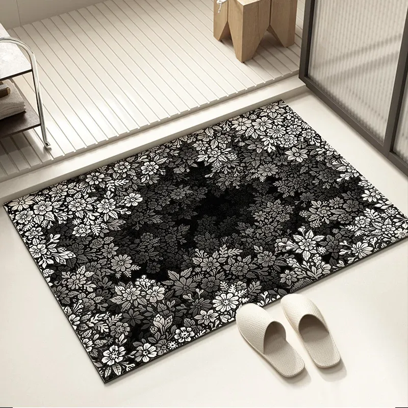 花柄ソフト珪藻土吸水マット - 浴室・トイレ用滑り止めマット、ドアマットとしても最適!おしゃれで機能的、家の隅々にぴったりフィットするお洒落なデザイン。快適さと安全性を両立させました!