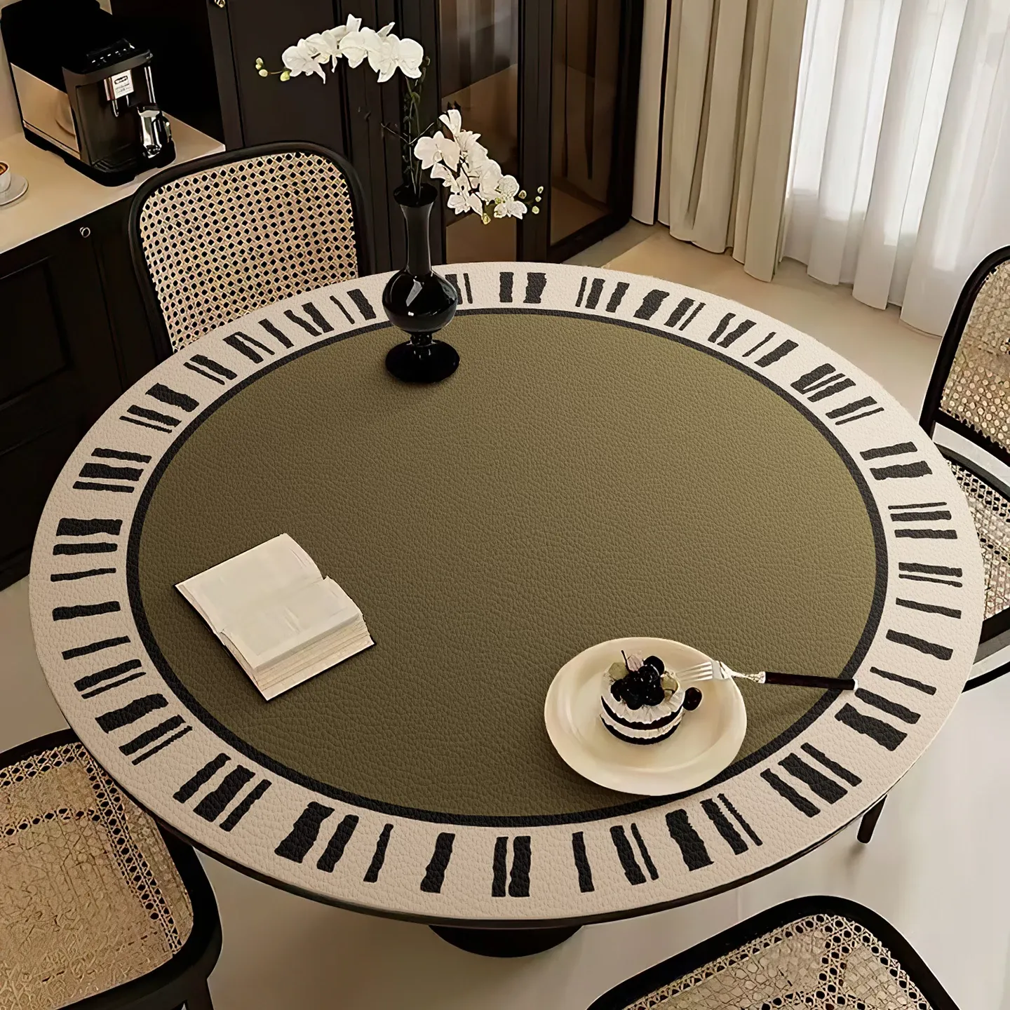 ウォッシャブルPVCレザー製ラウンドテーブルクロス、防水・防油、軽やかな高級感の北欧風、ティーテーブル用の熱遮断・耐熱テーブルマット。おしゃれなインテリアにぴったり!