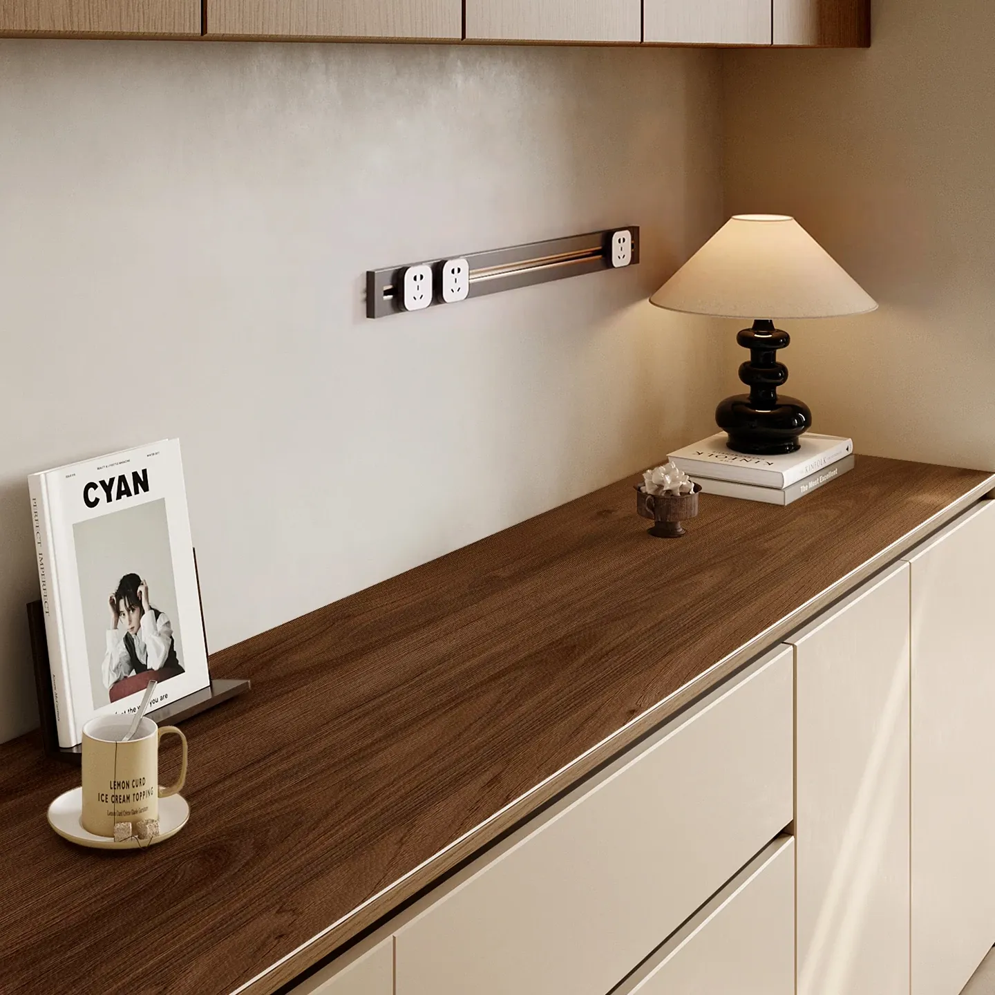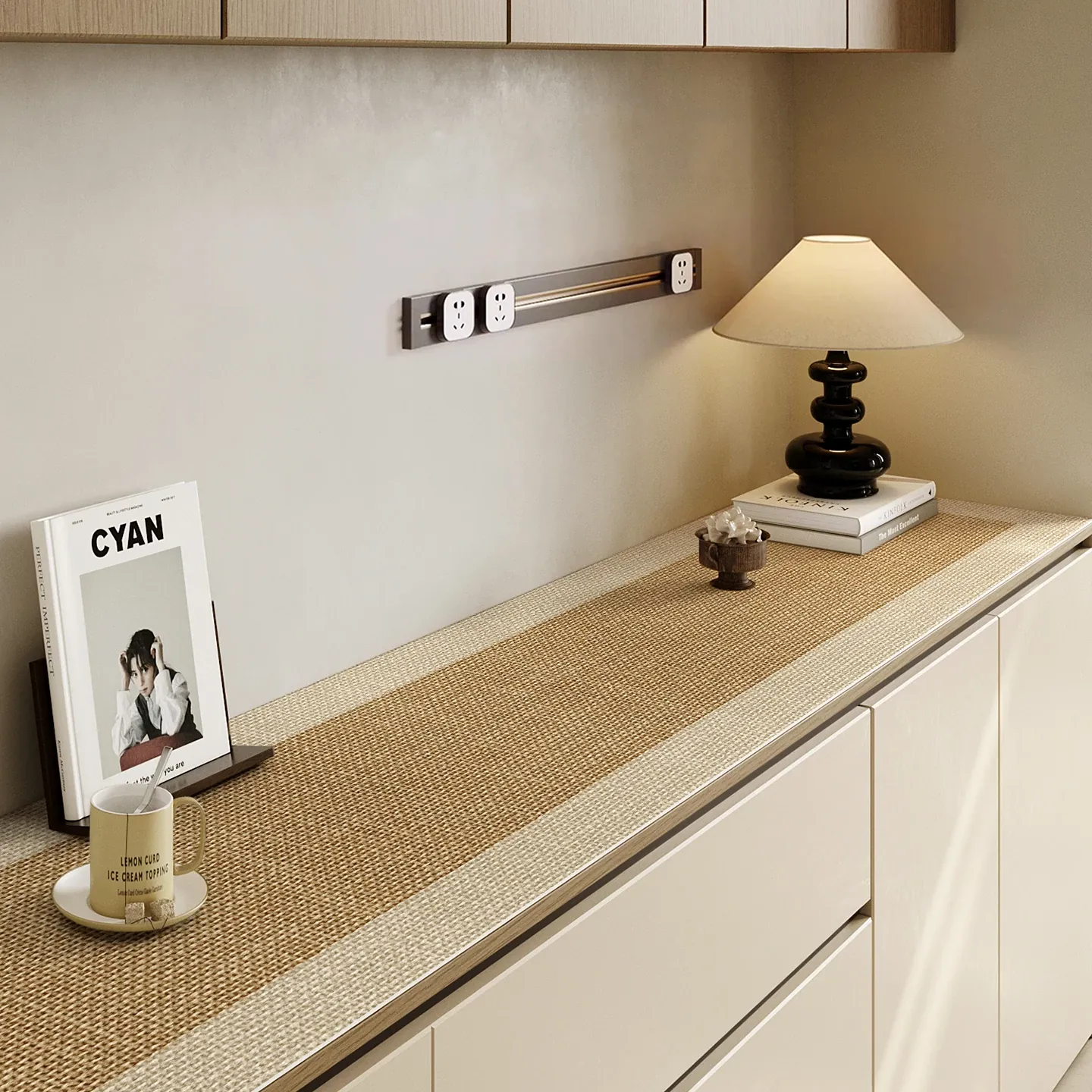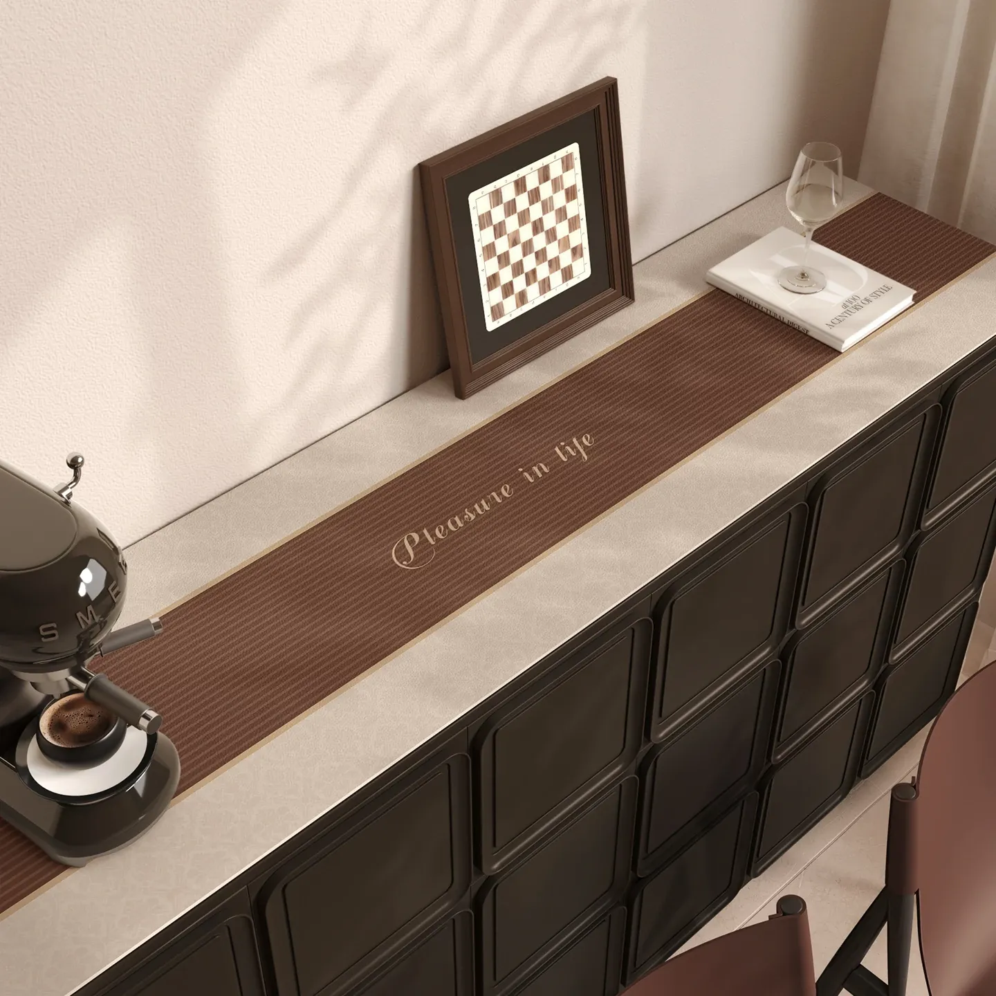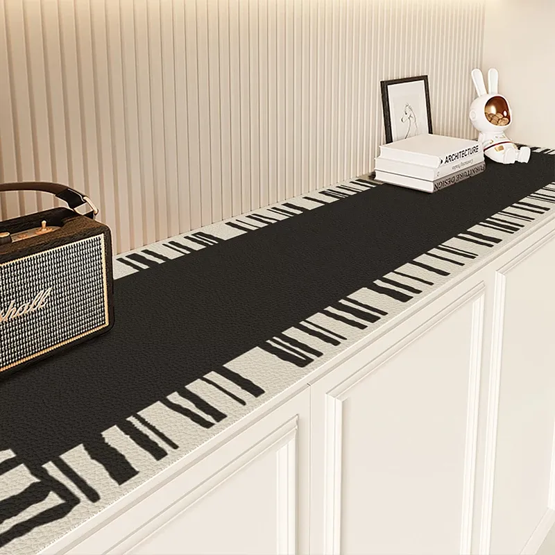 侘寂スタイルの高級感あふれるテレビキャビネットマット - 洗浄不要・防水・防油のレザー製テーブルマットで、台面をしっかり保護!軽やかなラグジュアリーをあなたの生活空間に。