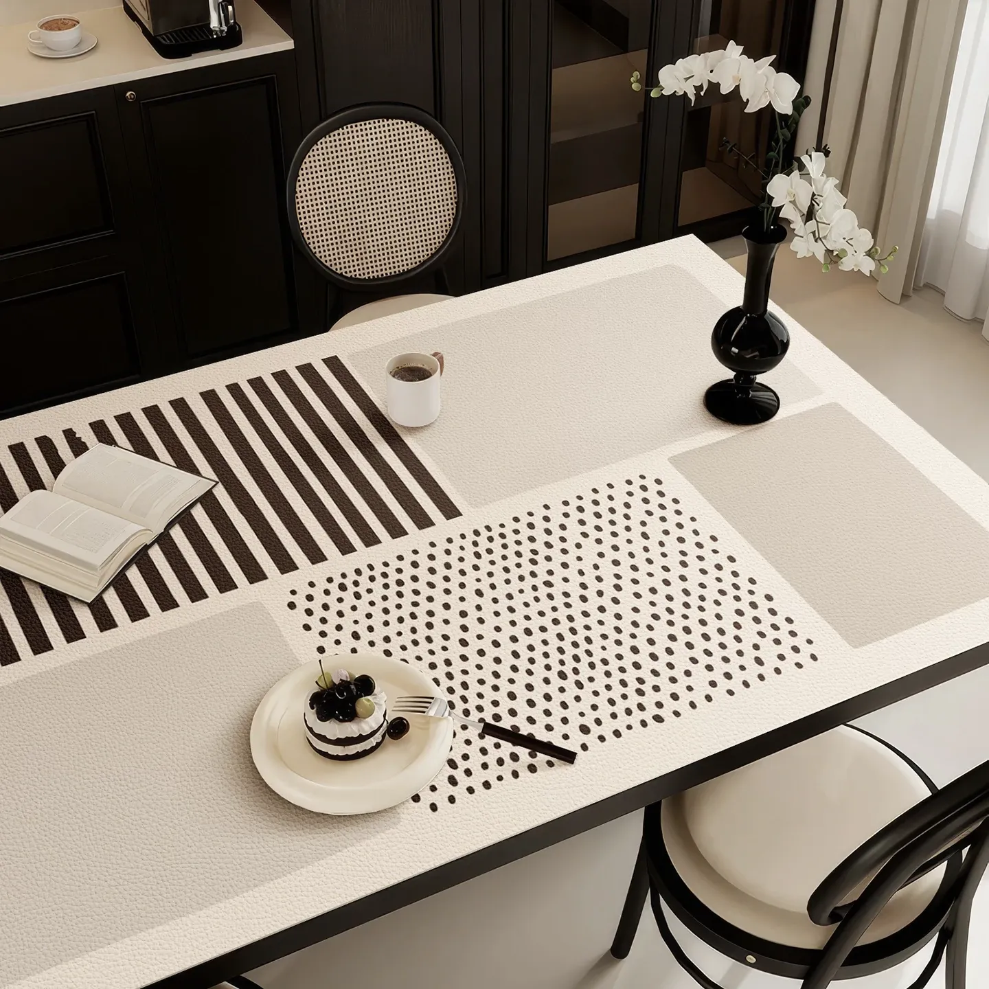 北欧風のおしゃれなテーブルクロス - 防水・防油仕様でお手入れ簡単!PVC素材のレザー仕立てで、食卓やテレビ台、靴箱、ワインキャビネットにも最適。あなたの生活空間をスタイリッシュに演出します!