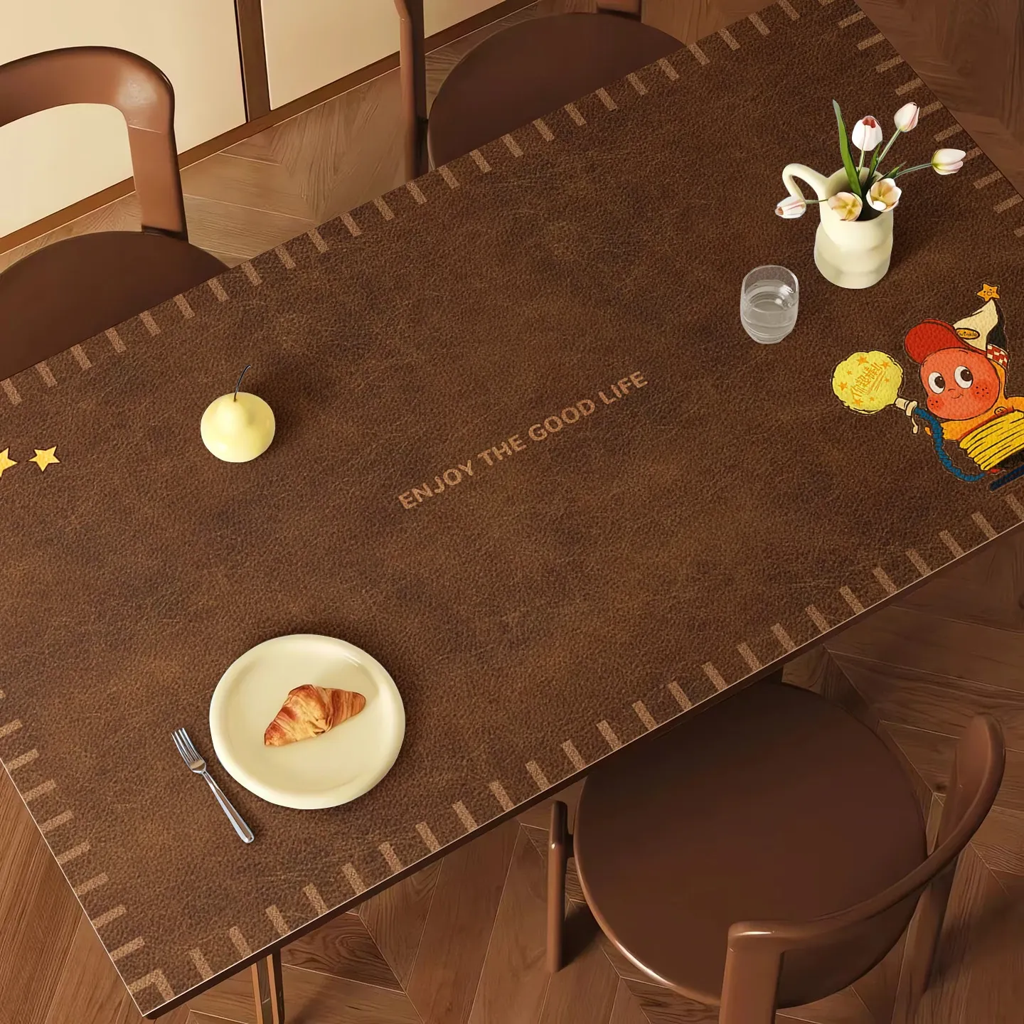 レトロカートゥーンデザインの防水・防油テーブルクロス|熱を遮断し、汚れを気にせず使える!滑り止め付きで、リビングや書斎にぴったりな革製テーブルマット。おしゃれで実用的なアイテムをお見逃しなく!